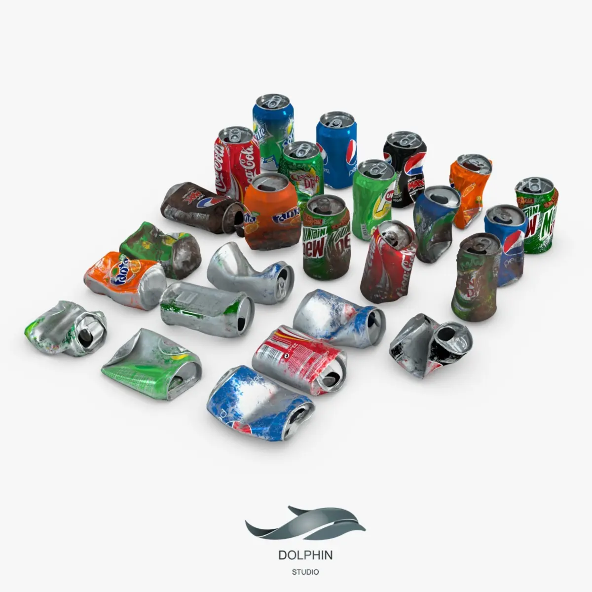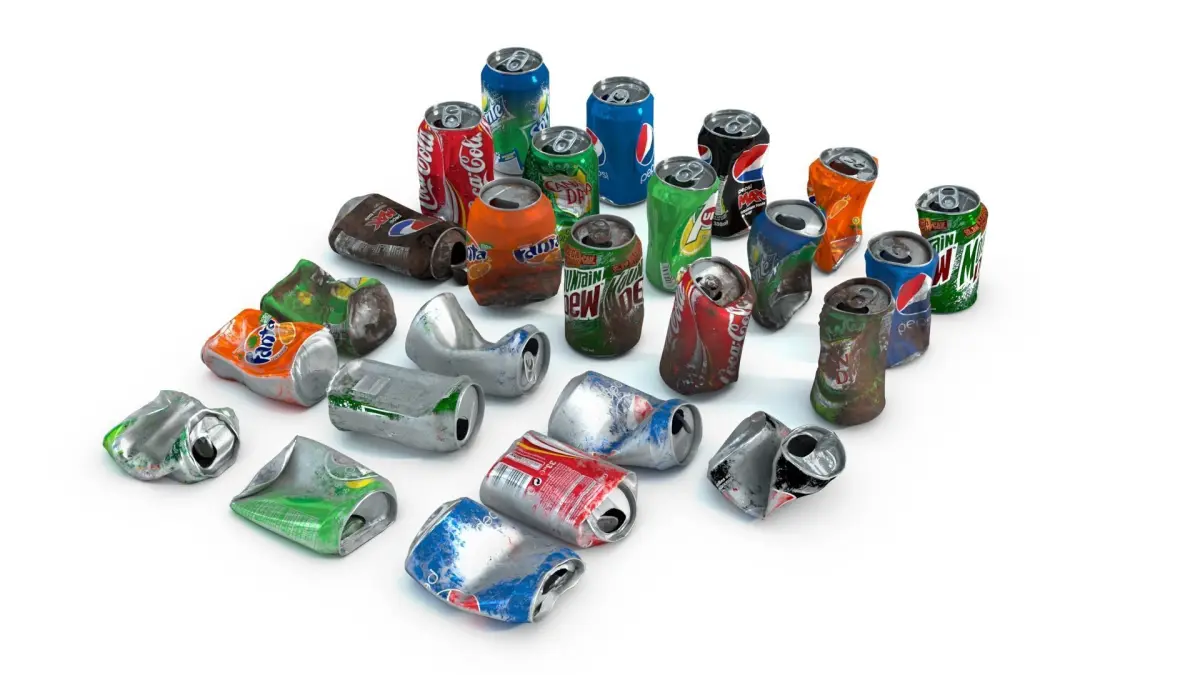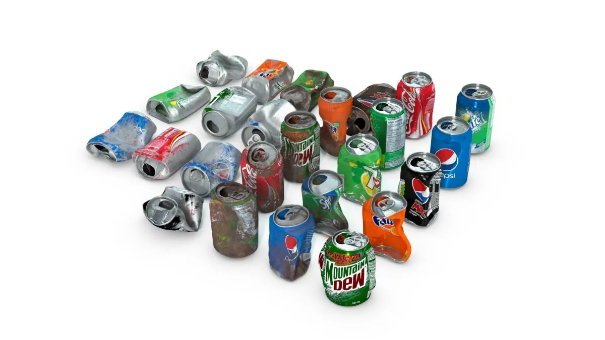 This is a PBR pack of 25 crumpled soda cans .25 texture set is provided . blender 3ds max and maya files have appled materials . Each model have 9500 polygons . Every texture available for every mesh . All of textures have 2048*2048 and good quality for the near the camera scenes .