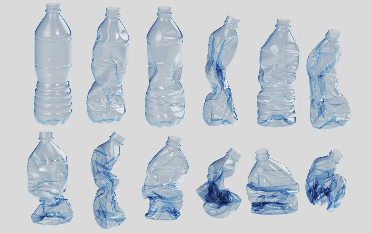 High quality 3D model of the Crushed Plastic Bottle v1.11 different crushed plastic bottles and 1 new plastic bottle with cap.Modeling in 3ds max 2021 and rendered with Vray 5. The max scene is Ready to render with Vray 5 settings. Clean topology based on quads and tris. The lighting scene is not included with the model.
