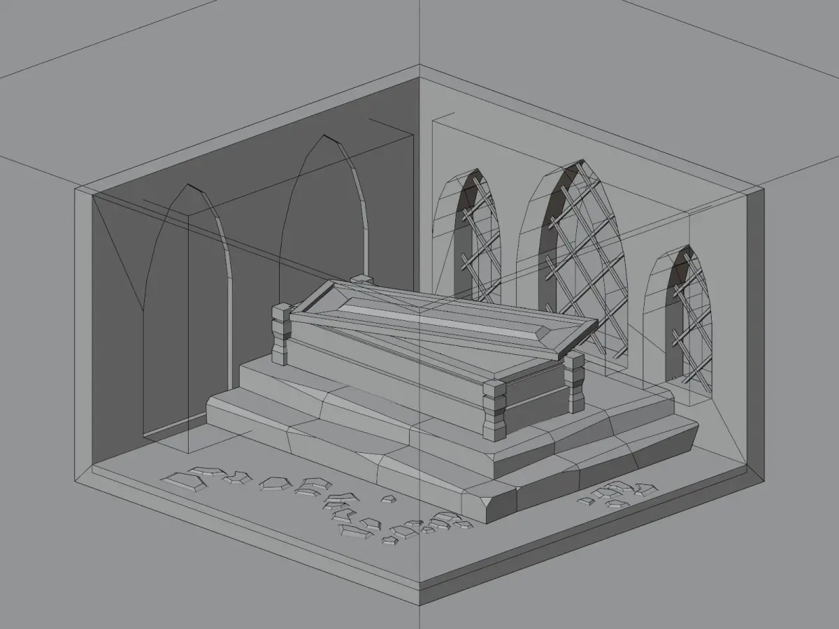 Crypt scene, Low-poly. Collection contains: crypt, light, camera, volume blend. Vertices - 1160Faces - 888