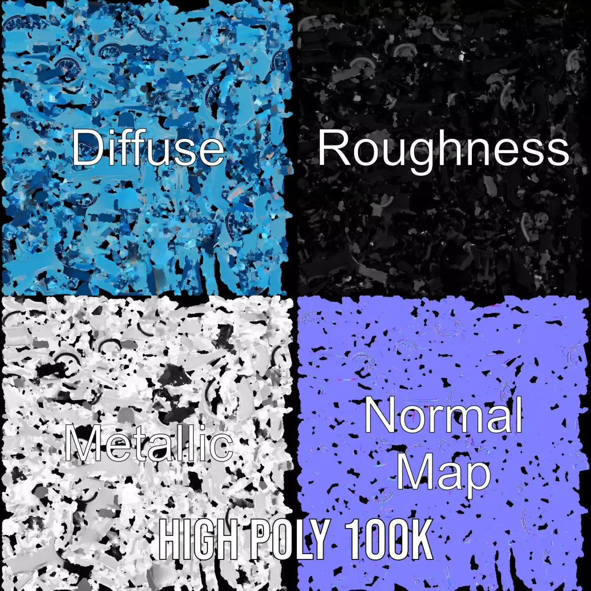 The textures are PBR, Diffuse, NormalMap, and reflection/roughness/metallic, which are suitable for any modern rendering engine. All models are accurately unwrapped and have no overlapping UVs.