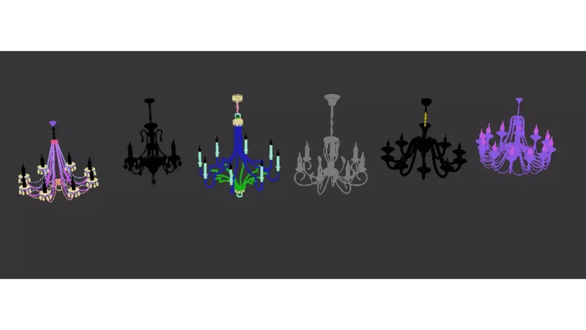 This showcases six 3D renderings of modern light luxury and neoclassical style golden pendant lights, displayed in a 2x3 grid format. The overall design features a warm gold metal frame and imitation candle lamp heads as the core elements, with a unified yet distinctive style. It is a highly representative lighting material in indoor soft decoration designCore design commonalitiesMain color scheme: All pendant lights feature warm gold/champagne gold metal frames, with some styles featuring brushed or distressed textures, creating an elegant and sophisticated visual tone.Lamp head design: All use imitation candle lamp heads, without lampshades or only supported by metal cup holders for light sources, with direct light transmission, creating a warm and ceremonial lighting atmosphere.Structural logic: The lamp arm is composed of smooth curves or geometric lines, balancing lighting function and decoration, and adapting to different heights and spatial scales.Details and style positioning of each lighting fixtureTop left: Natural Curve WindStructure: Designed with 8 heads, the lamp arms have a naturally extending curved shape, adorned with leaf shaped metal decorations, creating a dynamic and dynamic design.Style: Soft and graceful lines, combining a natural and luxurious feel, suitable for modern and minimalist European living rooms or dining rooms.Mid to high end: Elegant curved styleStructure: Designed with 8 heads, the lamp arm has a smooth S-shaped curve, and a droplet shaped crystal pendant is hung in the center to add a sense of delicacy.Style: Elegant and atmospheric, suitable for warm and romantic spaces such as French light luxury and American countryside.Top right: Line Art StyleStructure: 10 head double-layer design, the lamp arm is interwoven with multiple slender metal lines, with a modern and prominent structural sense.Style: Combining artistic and practical elements, suitable for modern minimalist, minimalist and luxurious spaces.Bottom left: Crystal light luxury styleStructure: Designed with 8 heads, the lamp arm has a curved shape, and multiple droplet shaped crystal pendants are hung below the lamp head, upgrading the sense of luxury.Style: On the basis of light luxury, it adds a sense of brilliance, suitable for bedrooms or banquet halls that pursue delicacy and luxury.Mid to low style: Crystal Art StyleStructure: Designed with 6 heads, featuring a large geometric cut crystal decoration at the center and curved lamp arms adorned with small crystal pendants.Style: Combining artistic and luxurious elements, suitable as the visual focal point of a space, such as a foyer or living room main light.Bottom right: Geometric light luxury styleStructure: Designed with 8 heads, the lamp arm features sturdy geometric lines, with a modern and prominent structural feel.Style: Combining industrial and light luxury, suitable for loft and industrial style mixed light luxury spaces.Application value and scenario adaptationRendering performance: Using realistic 3D rendering, it accurately reproduces the luster of metal, the refraction of crystal, and the warm atmosphere of lighting, intuitively presenting the actual effect of the lamp.Scene adaptation: Six lighting fixtures cover a variety of styles from simple to gorgeous, from modern to classical, and can flexibly adapt to different layouts and decoration positioning. They are ideal reference materials for interior design and soft decoration matching.