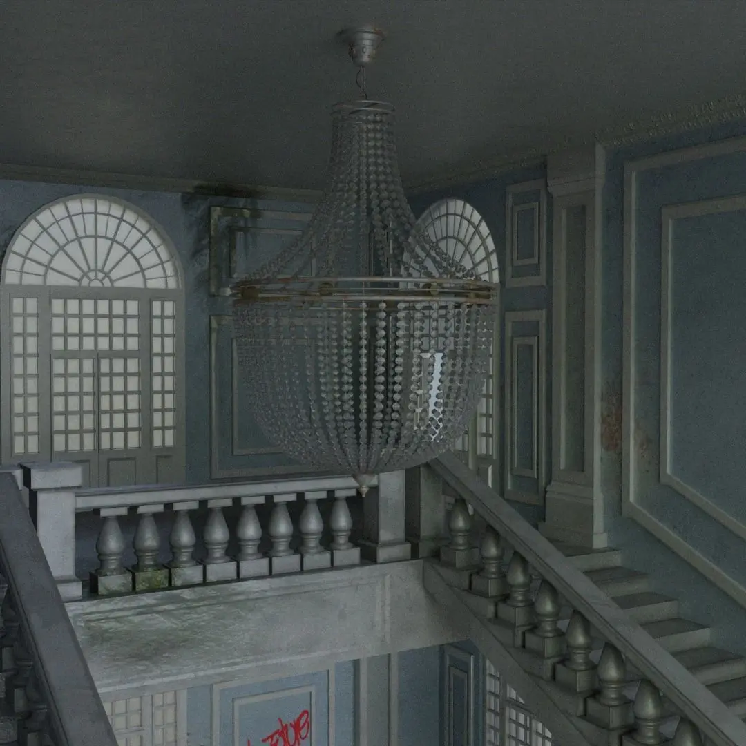 Old crystal chandelier with mapped UVs and textures. Textures can be changed so it can become new again. Already UV unwrapped and mapped without any overlaps.