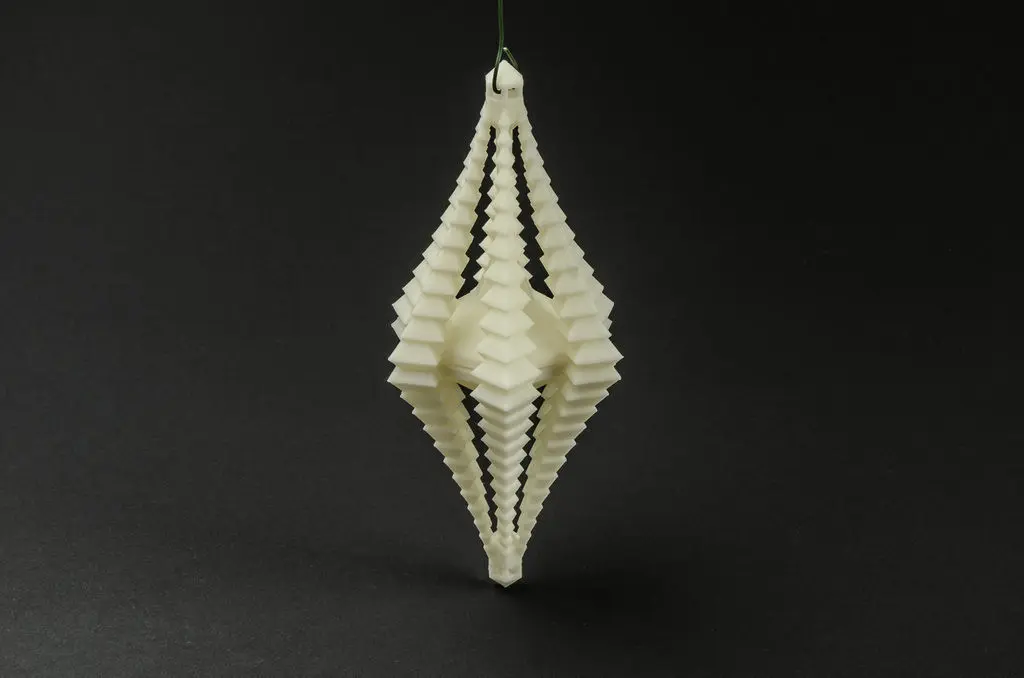 This is our entry into the MakerBot Ornaments Challenge. This design has an overall traditional shape with stacked facets that give it an up to date look. At it's widest cross section you can see that it is derived from a snowflake's six sided crystal shape. This also looks good as just the top half as well. Printed in green it may look like a tree.