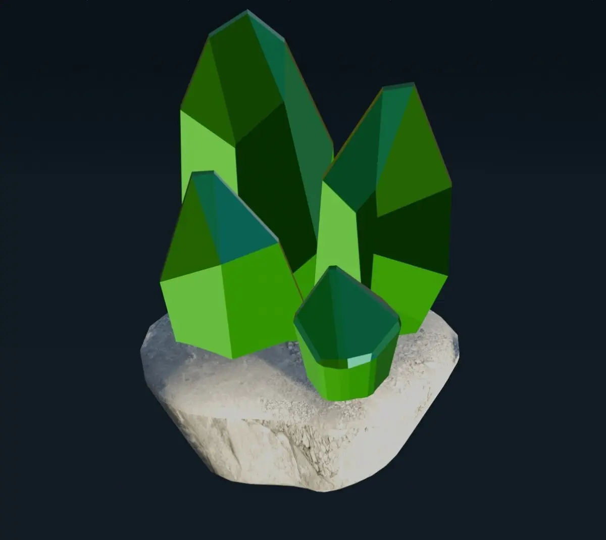 Crystal Mineral is a stylized 3D model of a colorful mineral crystal cluster placed on a rock base. This model includes UV mapping and high-quality textures, making it suitable for a wide range of 3D applications such as games, animations, virtual worlds, or environment design.