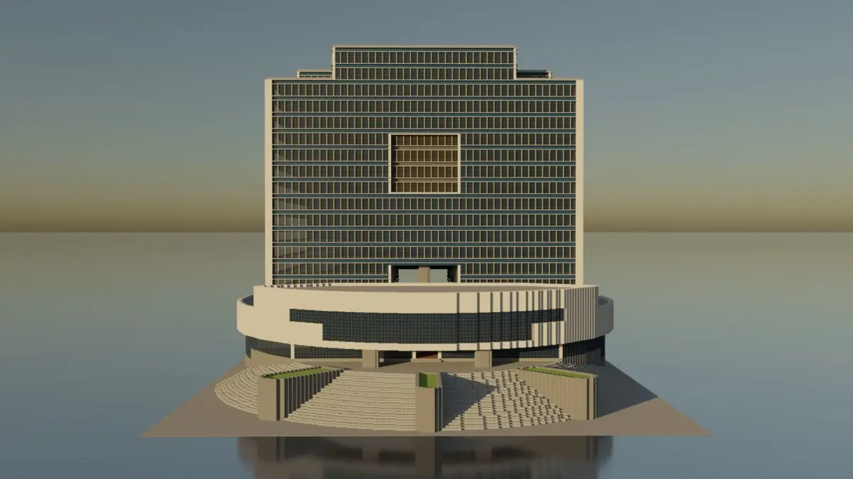 This model was created in the Minecraft style based on images of the real building, so it is not an exact replica of the building.