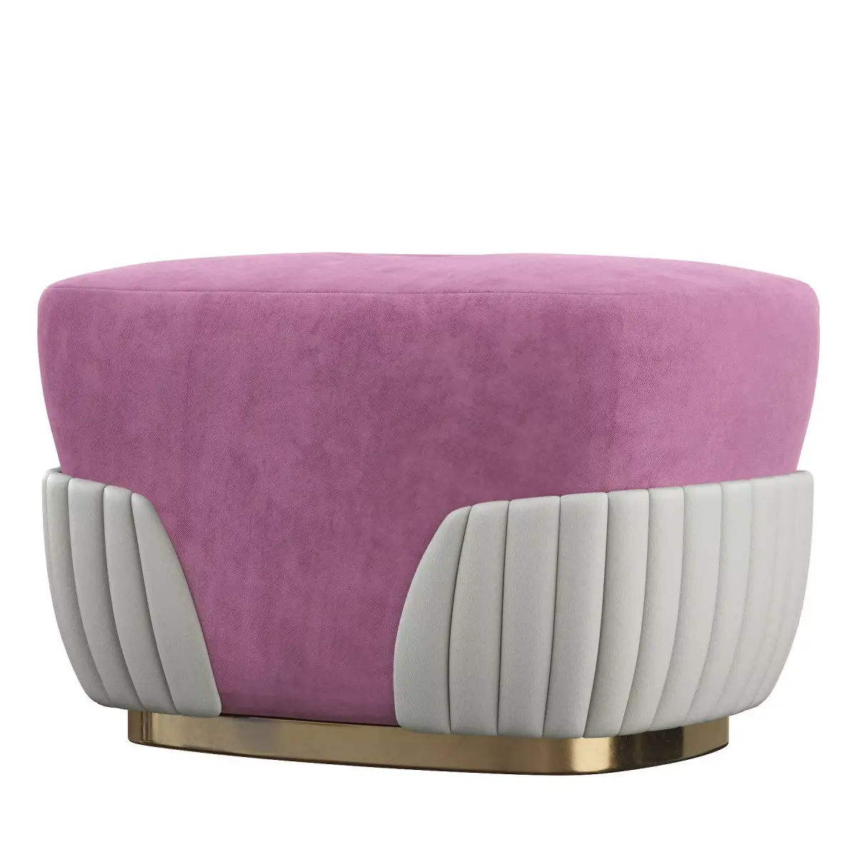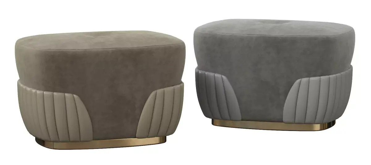 Chaneling both chic city living and classic tradition, the Crystal Pouf is made by hand in Veneto. On a gold metal base, the pouf features sand-colored faux leather with vertical stitching and chic velvet upholstery. Equally at home in Manhattan or Milan, the pouf is a perfect addition to a living room or women's lounge area.