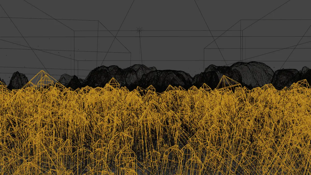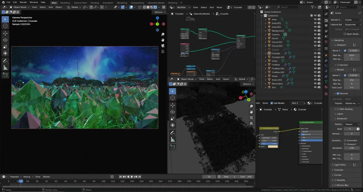 This scene uses Geometry Nodes, Particle System and Volumetrics.