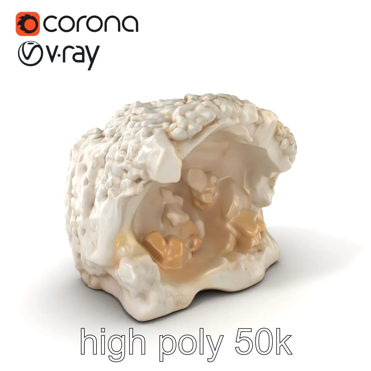 Each model has 3 levels of detail: low-poly, middle-poly, and high-poly, which allows for the use of this model in production rendering (such as 3ds Max, Maya, Cinema4D, Blender, Vray/Corona/Cycles, and all others), game engines (Unity and Unreal compatible), and interactive presentations, providing a choice of detail based on the LOD System principle. This model is perfect for fantasy environments, cave scenes in games, or architectural visualizations requiring natural or mystical designs.