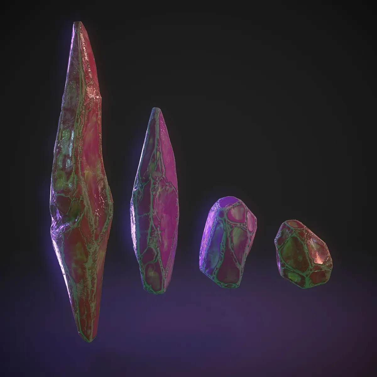 Textures : Bace Colour 4096x4096normal 4096x4096, AO 4096x4096, Roughness 4096x4096, height 4096x4096, Emissive4096x4096 maps. (the textures made in Substance designer, Substance Painter)You can change the color of the crystals by simply change the Bace Colour