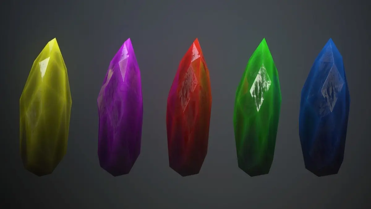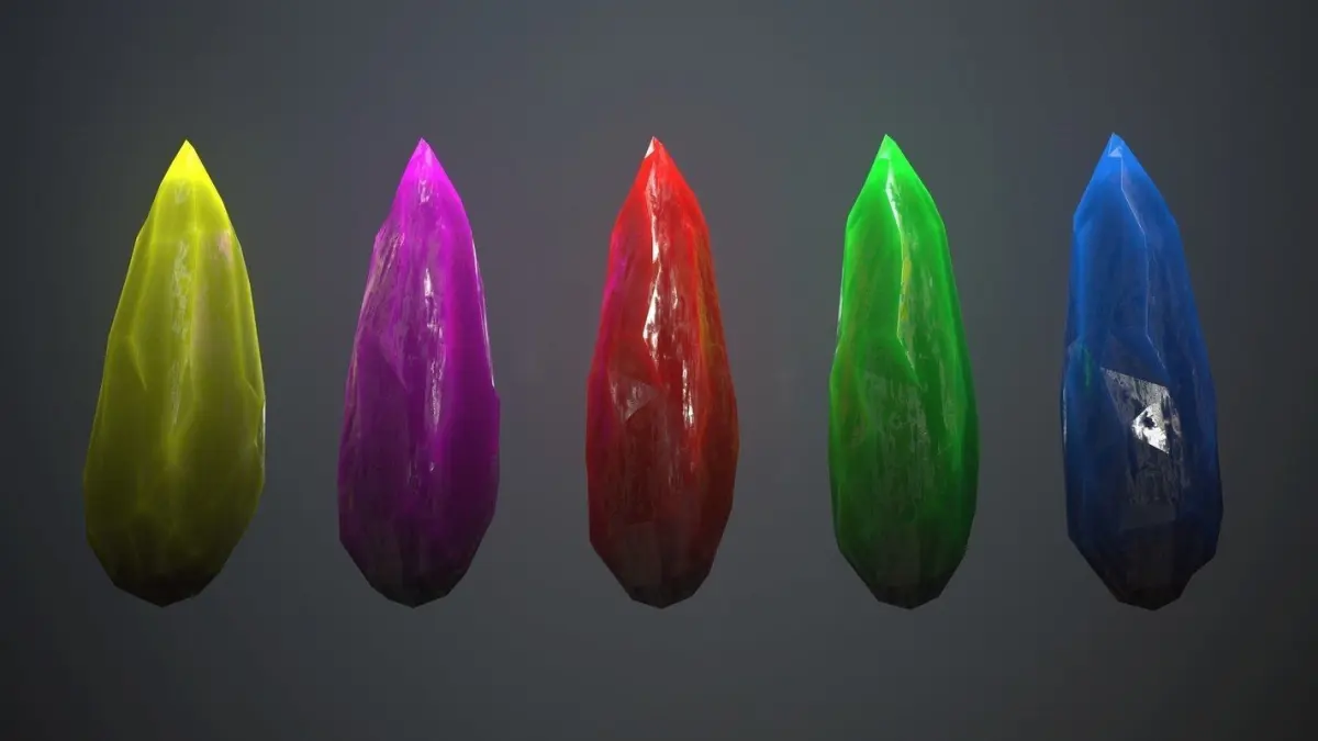 Crystal 1 : 15 polygon 12 vertices Crystal 2 : 39 polygon 26 vertices Crystal 3 : 46 polygon 25 vertices Crystal 4 : 162 polygon 83 vertices Crystal 5 : 60 polygon 32 vertices Crystal 6 : 78 polygon 41 vertices Crystal 7 : 271 polygon 220 vertices Ruby : 21 polygon 16 vertices