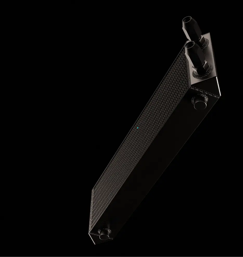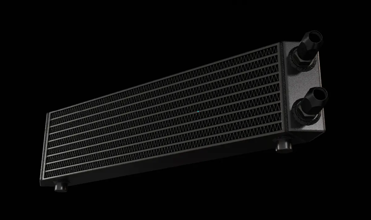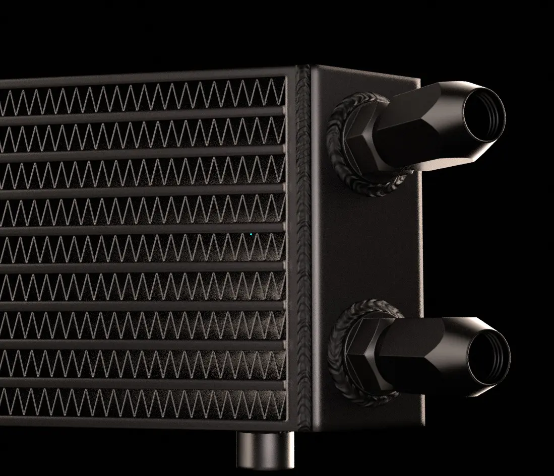 oil is the blood of any automobile and under track conditions an oil cooler becomes essential. featuring custom end tanks with a 45° front angle and fittings pointed straight back, allowing them to fit flush inside ’73-style Porsche RS/RSR bumpers. Used as a universal-fit cooler,
