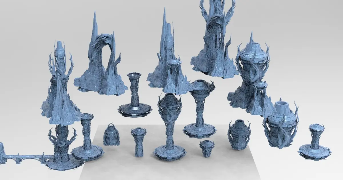 HomeCatalogCthulhu ocean Sci fi Towers collection full Low-poly 3D model