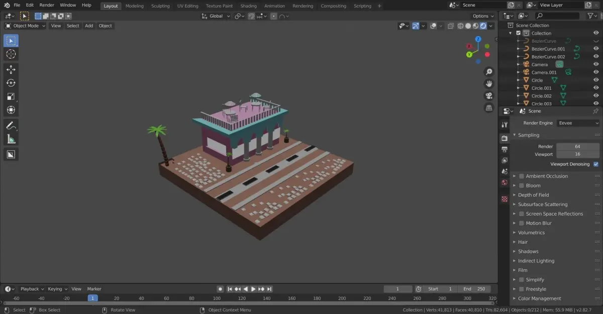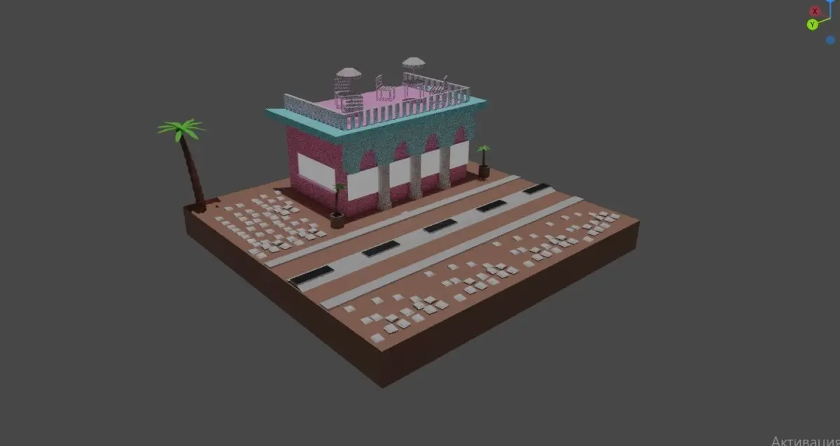 creating the lowpoly model of build with cuba atmosphere.