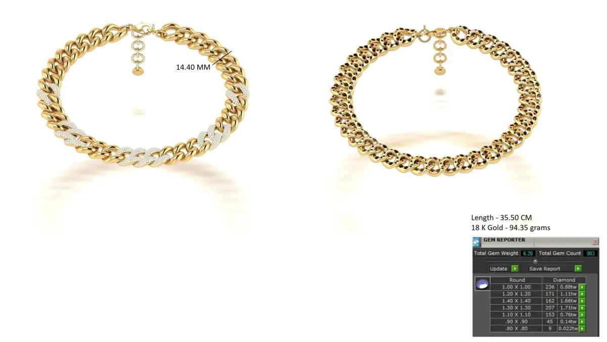 Hello, Here our New Design is Cuban diamond Neckalce chain Fully Light weight and hollow from inner side Necklace is 14.40 MM wide and Length Is 35.50 CM + adjustble exansion links Formates : 3DM and stl