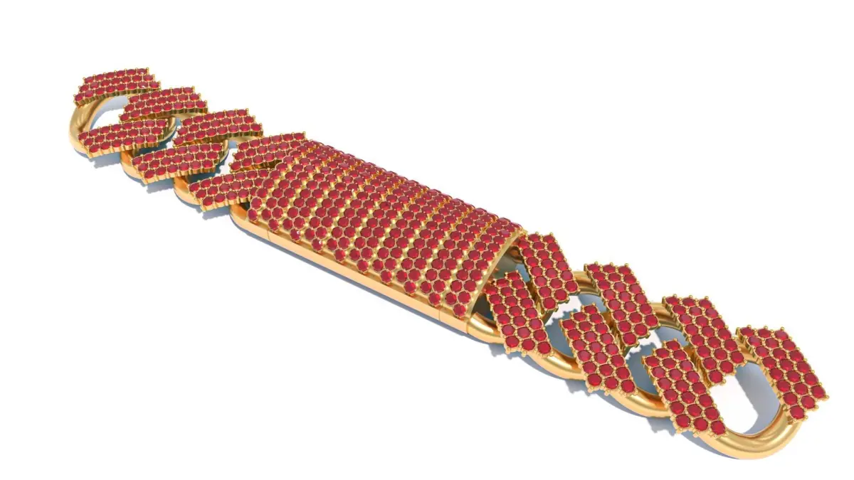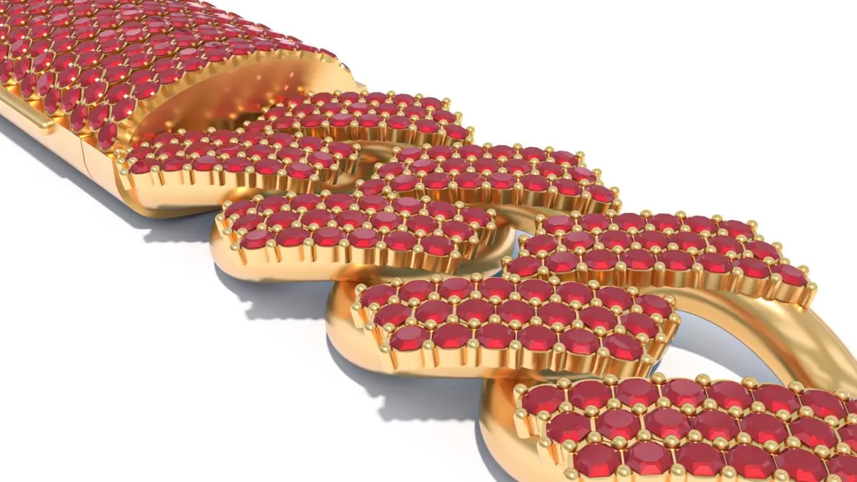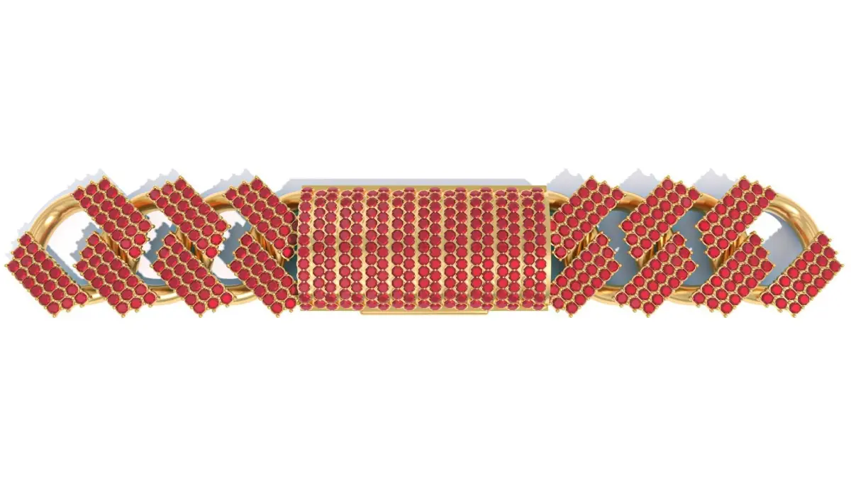 Cuban Link Chain Bracelet with Ruby Stone 3D print model Free low-poly 3D model