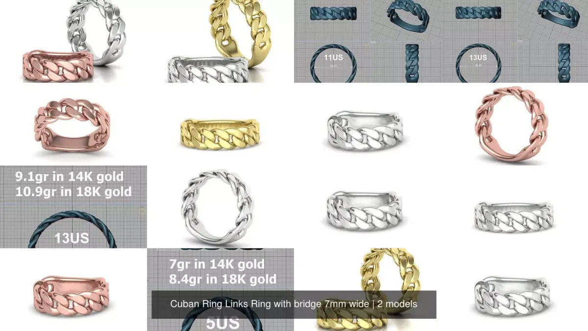 Cuban Ring Links Ring with bridge 7mm wide 3D Model Pack