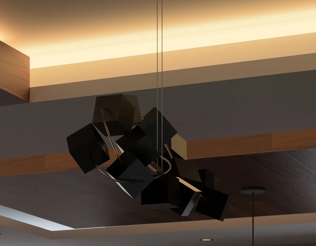 Revit Family of a suspended lighting pendant consisting of LED flex and parametric cubes, you will also get the file in FBX format to use in 3ds max