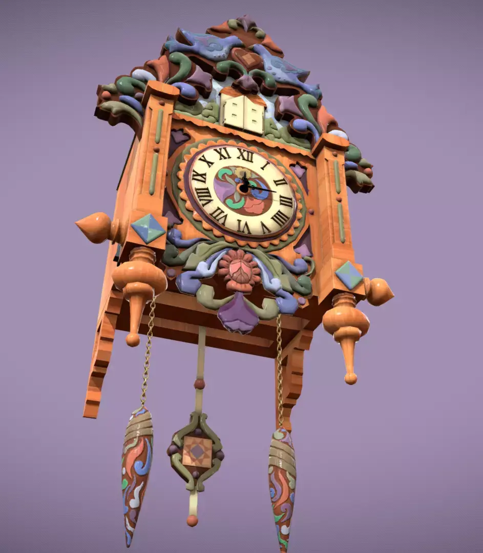 Formats included: FBX, OBJ, GLTF Textures: 2 PNG files (Base + Components), 8-bit UVs: Non-overlapping, ready for baking or custom maps Subdivision-ready: Yes – clean topology supports smooth subdivision without distortion. Compatibility: Blender, Unity, Unreal Engine, and most 3D software Note: Animated cuckoo bird is not included Scale: Real-world units Materials: Included Folder structure: Professionally organized (Models, Textures, Renders)