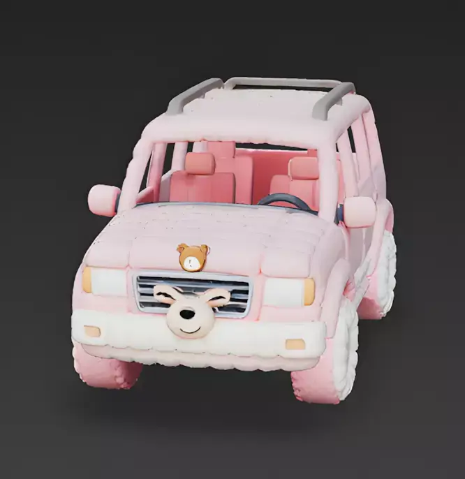 Asset BreakdownThis model is a whimsical departure from standard vehicle assets, designed with a soft, tactile aesthetic in mind: