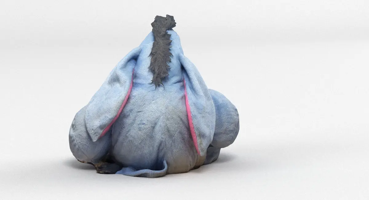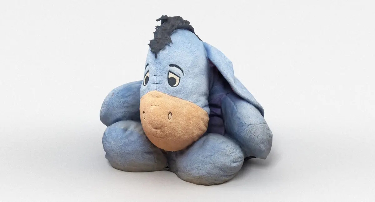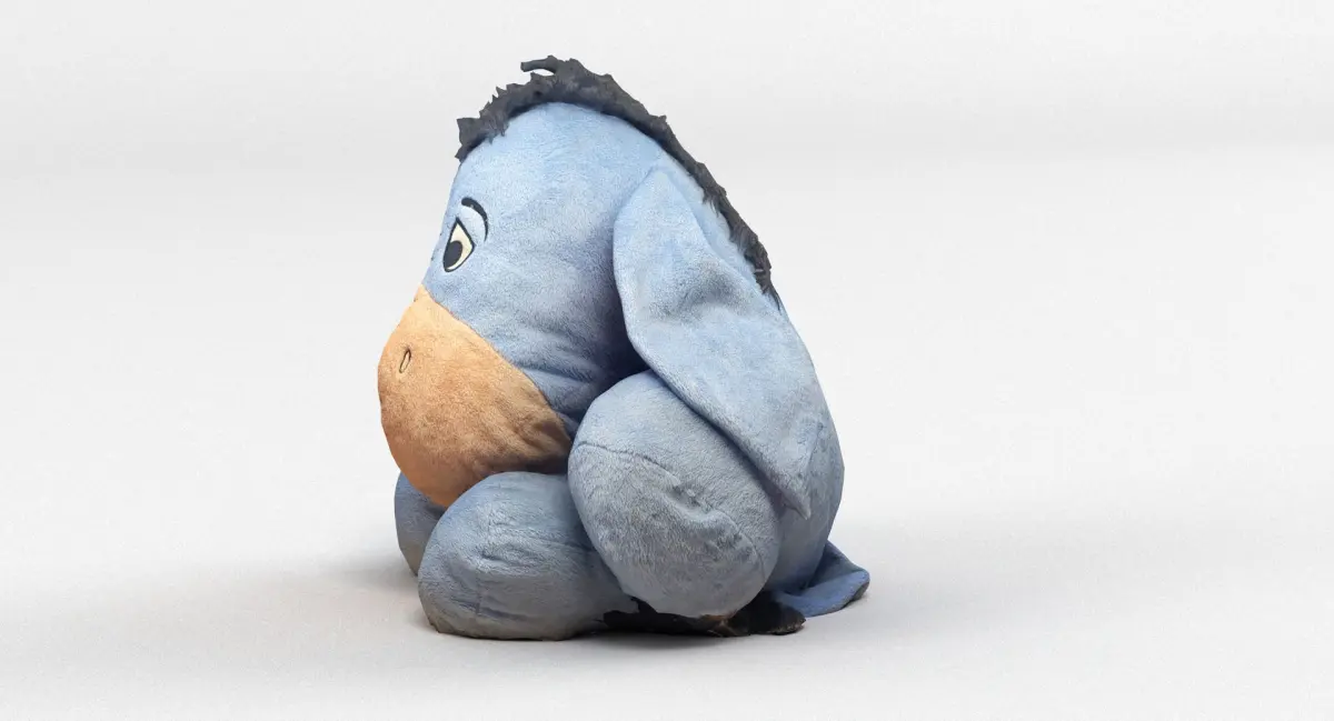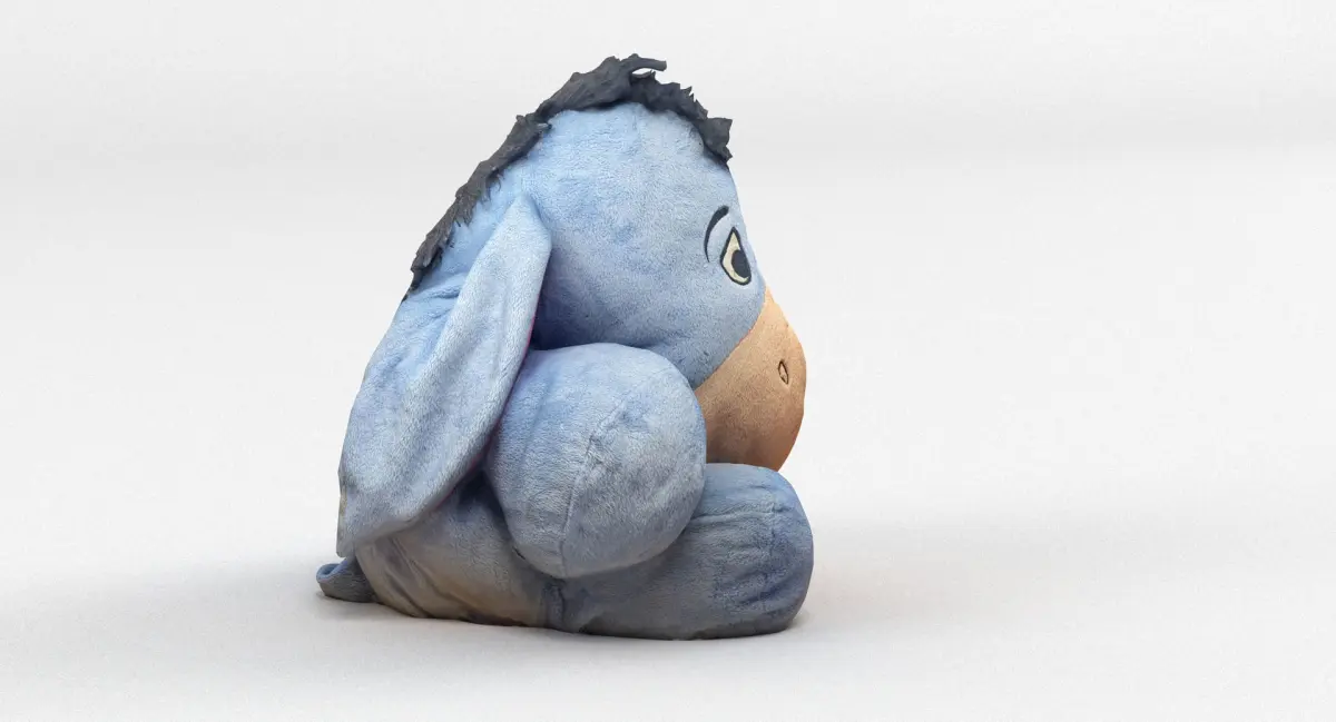 A DETAILED 3D MODEL OF AN EEYORE CUDDLY TOY;