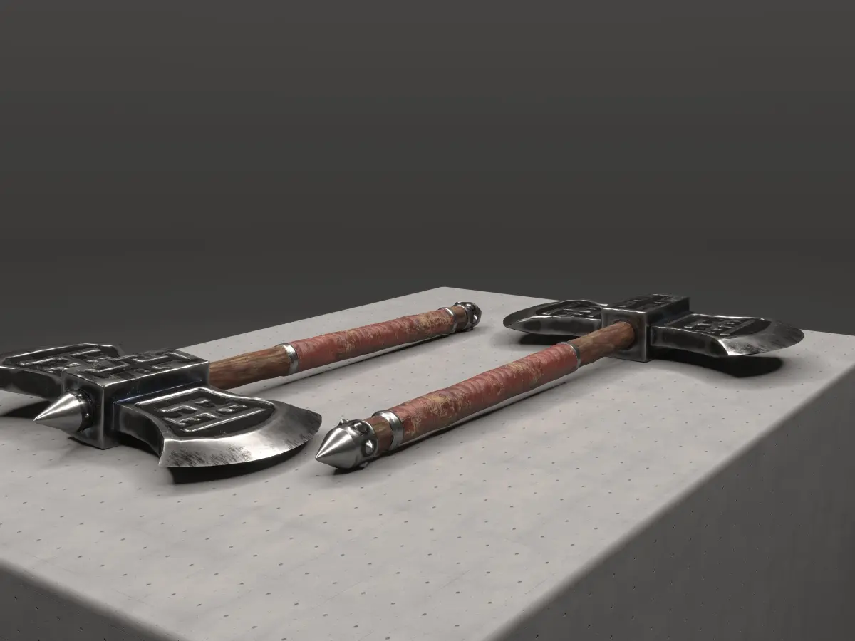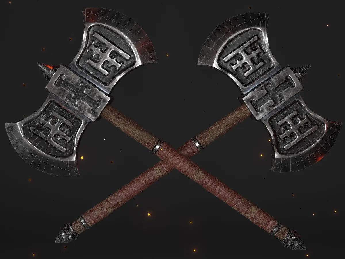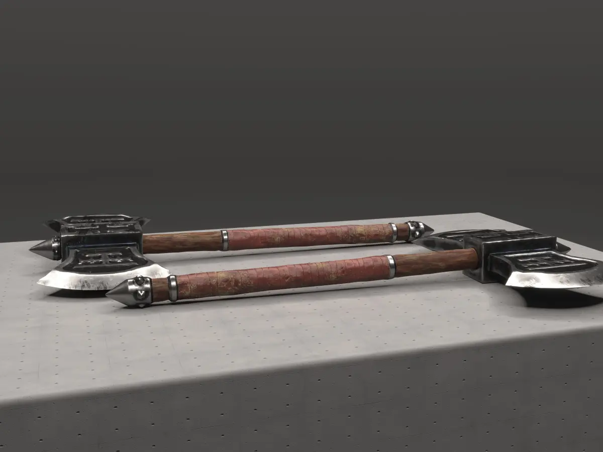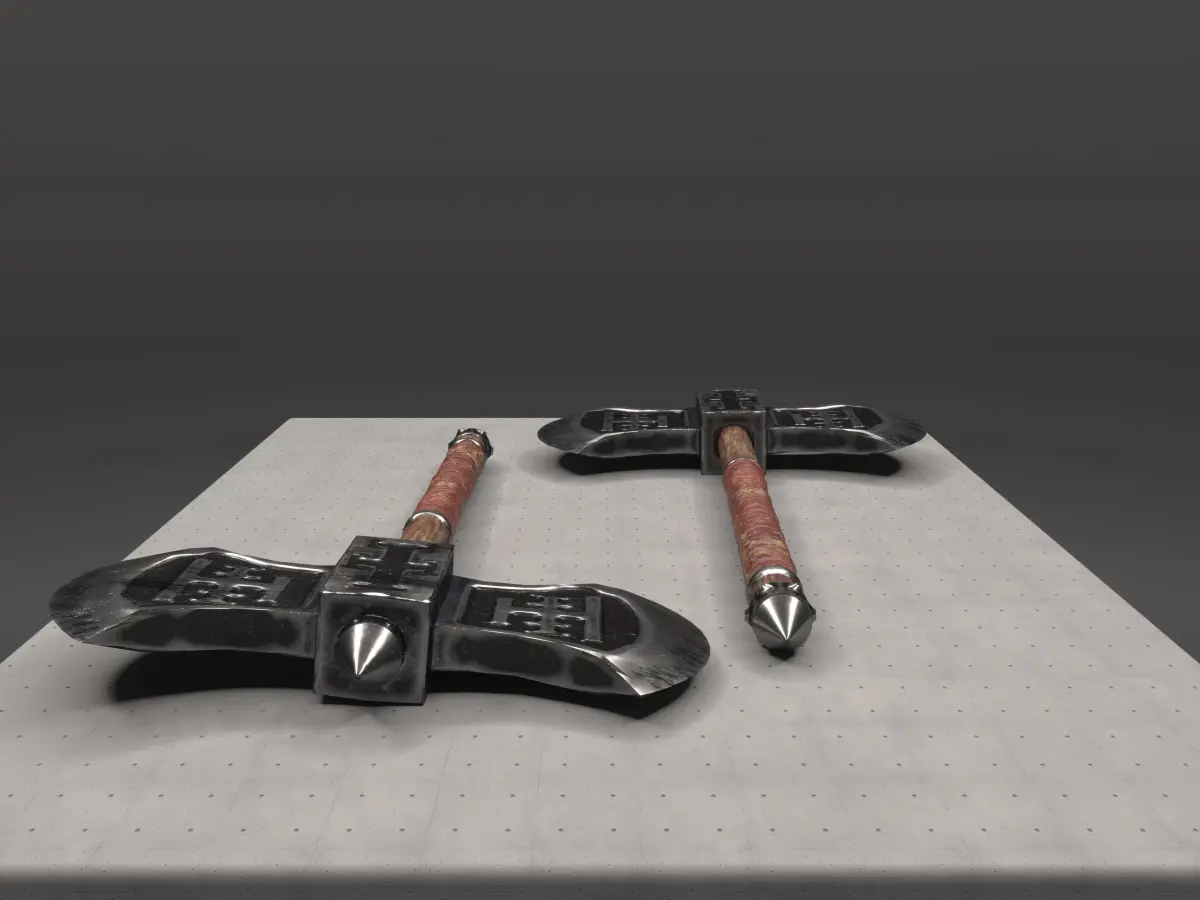 This is an original design with custom carvings of a fantasy cult. This battleaxe is a piece of a full axe collection but you can use it as a stand alone item. The model is low-poly with PBR material maps and ready for game production.