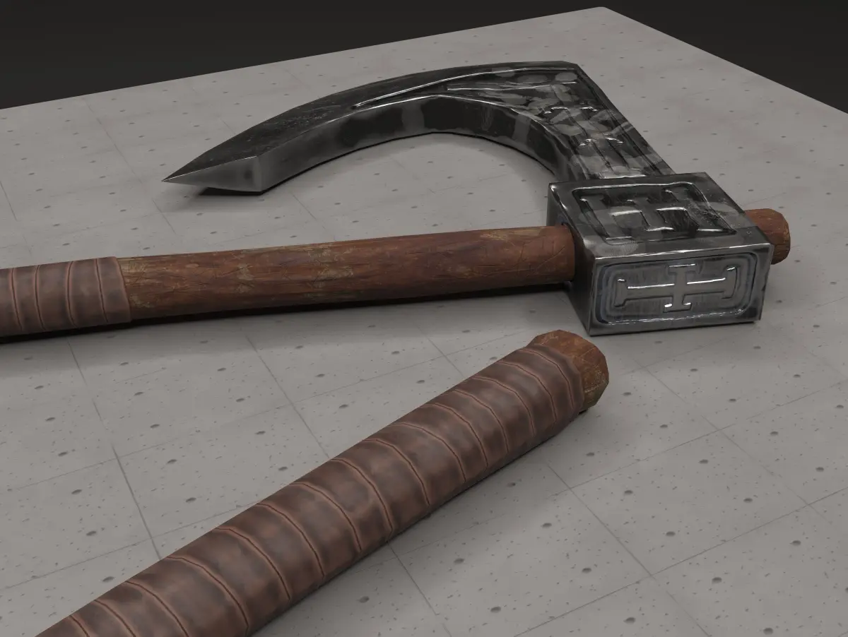 This is an original design with custom carvings of a fantasy cult. This waraxe is a piece of a full axe collection but you can use it as a stand alone item. The model is low-poly with PBR material maps and ready for game production.