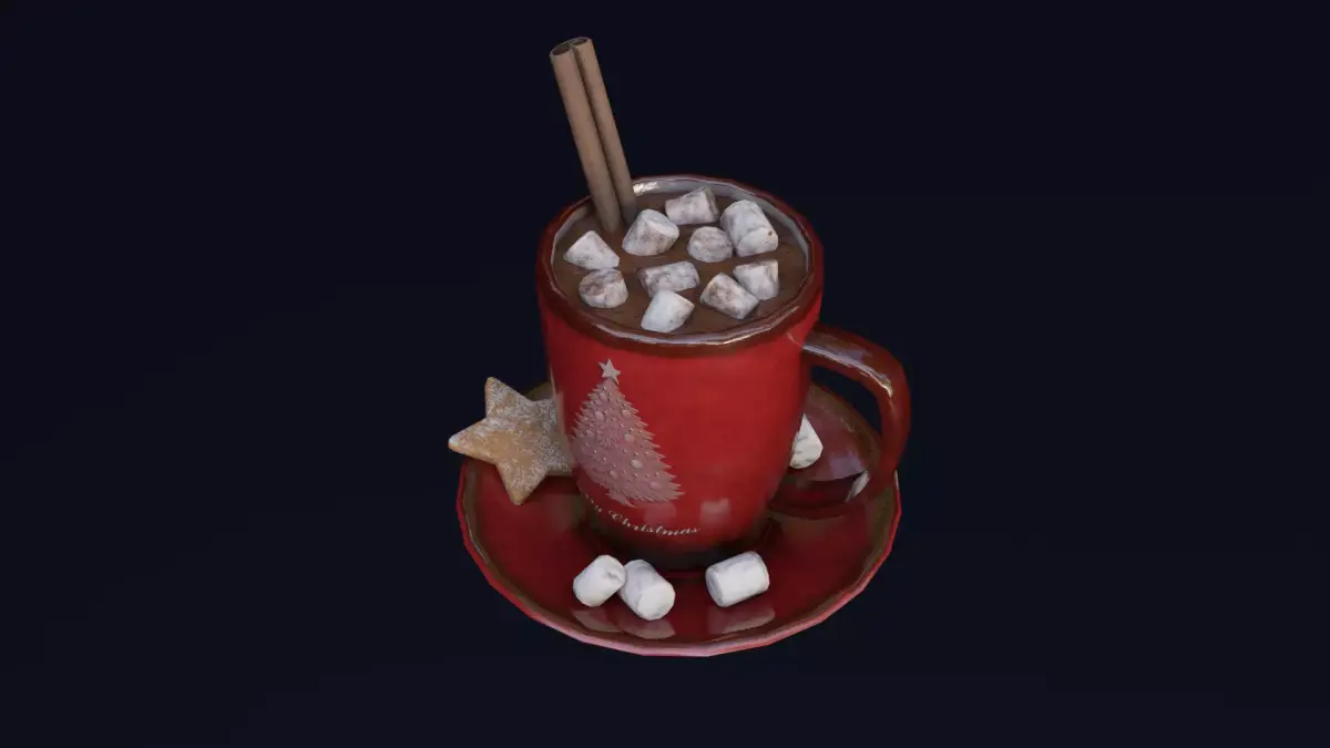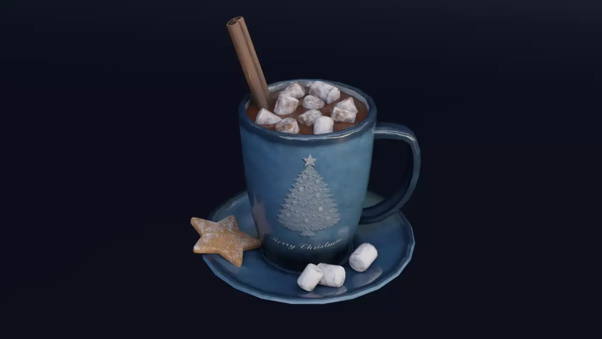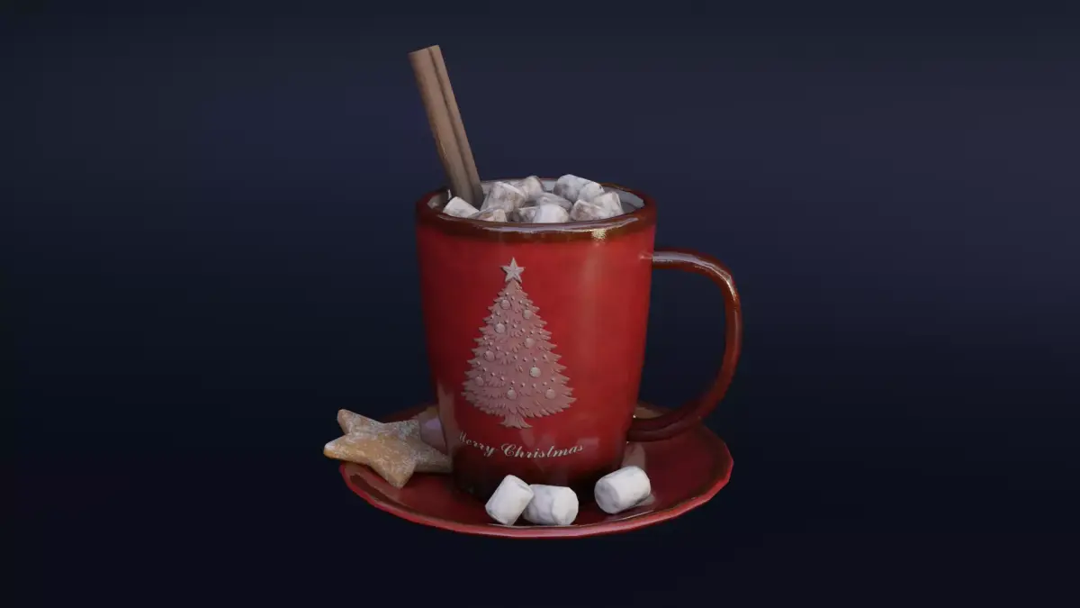 Placed together, the three mugs create a small scene that could belong in a kitchen, a café, or a decorated living room. The set works well for holiday interior renders, winter market stalls, cozy storytelling environments, or game scenes where seasonal props help build atmosphere. Each mug variation shares the same structure but carries its own color personality, making them useful both as a group and individually.