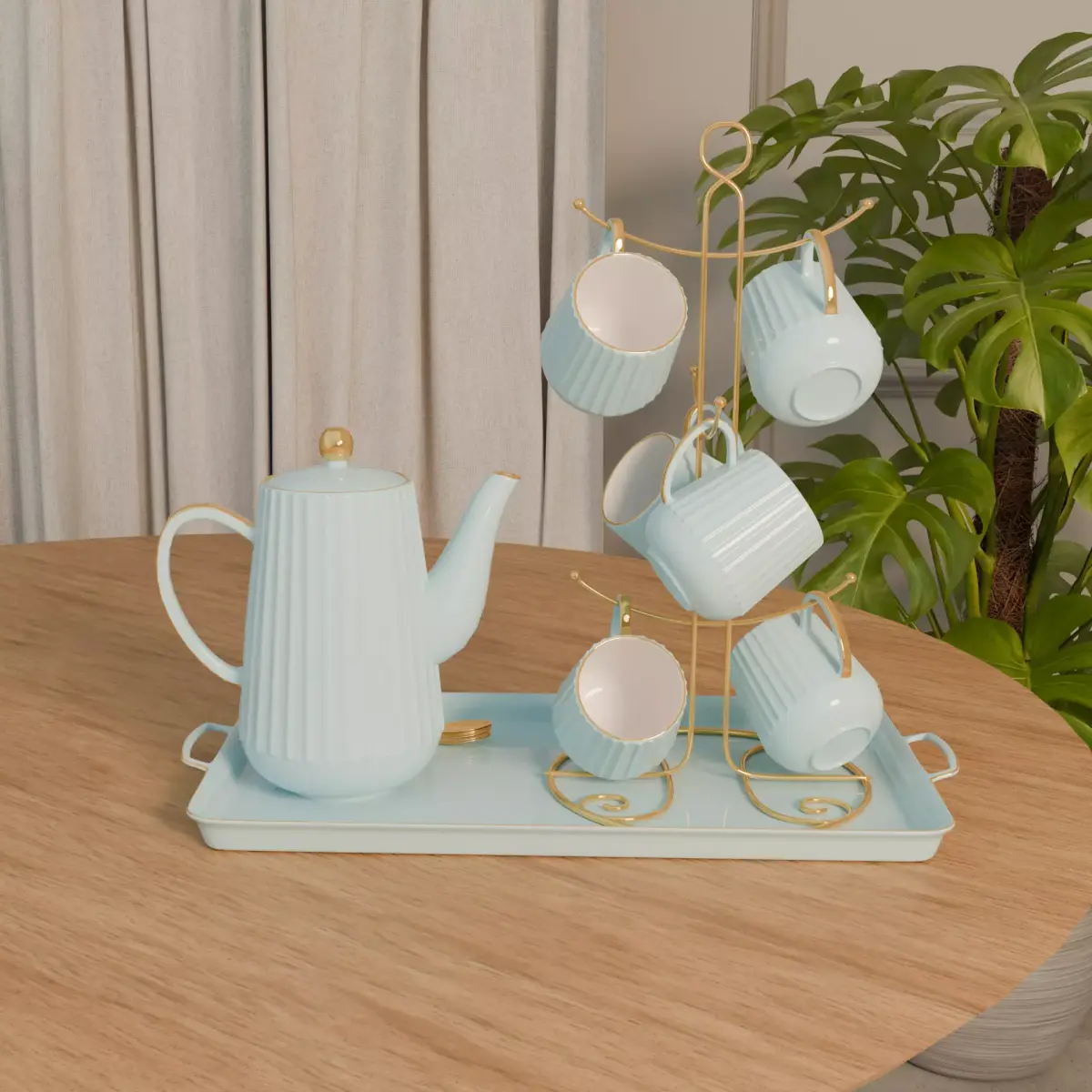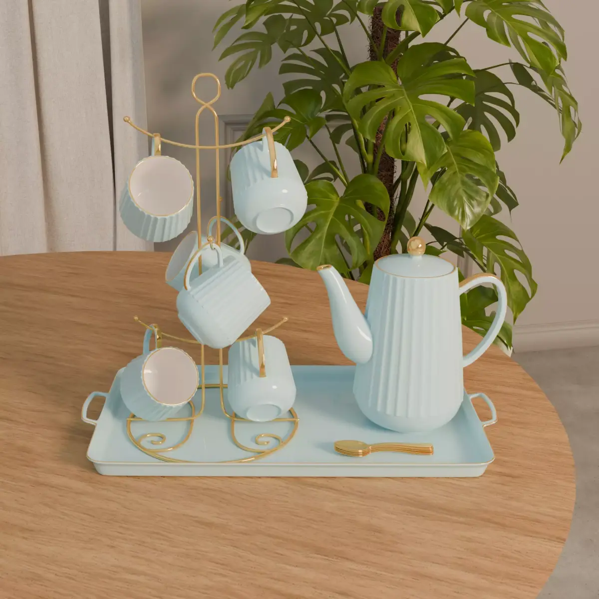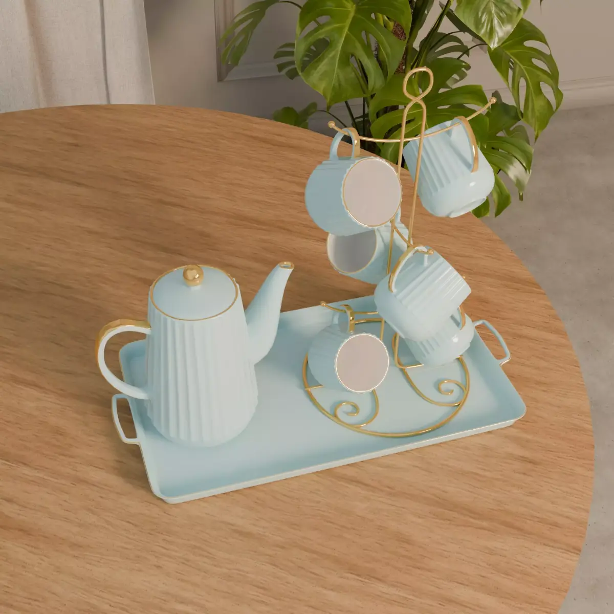 This high-quality 3D model of a cup set with a tray and metal stand has been carefully crafted for photorealistic renders and interior design projects. Each element—from the smooth ceramic cups to the elegant tray and support—has been modeled with great attention to detail, achieving a perfect balance between realism and cleanliness of topology.