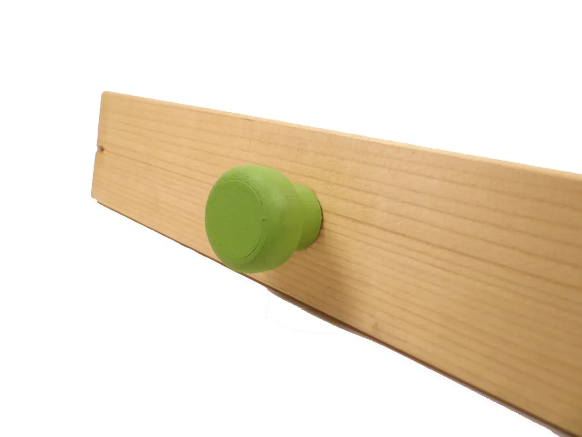 Standard cupboard drawer or door handle, with drill hole for securing with a screw.