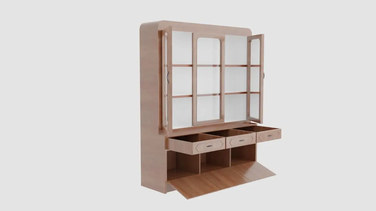 Doors rotate on Z axis only. Drawers in the middle can be opened by grabbing on ** Y axis** while the bottom drawers can be opened using rotating on ** X axis**.