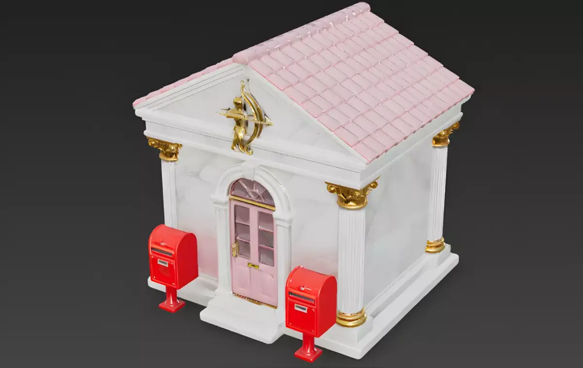 The Overall ConceptThis asset is a high-end centerpiece for any romantic or holiday-themed environment. It is a small fantasy post office featuring premium marble walls and classical gold accents, making it a perfect functional hub for players to send messages, gifts, or Valentine rewards.