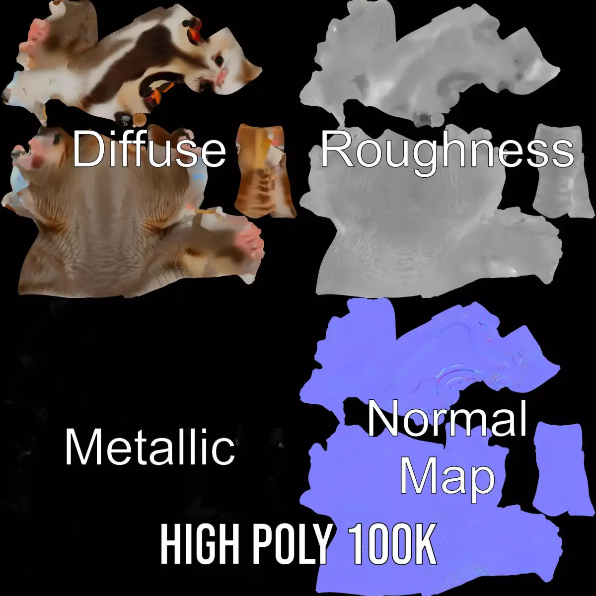 The Curious Possum Creature model pack is a highly detailed 3D model featuring a realistic possum standing with an inquisitive expression. Each model has 3 levels of detail: low-poly (1000 triangles for mobile), middle-poly (10,000 triangles for environment), and high-poly (100,000 triangles), which allows for the use of this model in production rendering (such as 3ds Max, Maya, Cinema 4D, Blender, Vray/Corona/Cycles and all other), game engines (Unity and Unreal compatible), and interactive presentations, providing a choice of detail based on the LOD System principle. Perfect for use in animations, educational content, and virtual reality projects, this model brings character and life to your scenes. The model's textures are PBR, Diffuse, NormalMap, and reflection/roughness/metallic, which are suitable for any modern rendering engine. All models accurately unwrapped and have no overlapping UVs. All textures are 4096*4096 in size. Please like and leave a comment for the model if you enjoyed it.