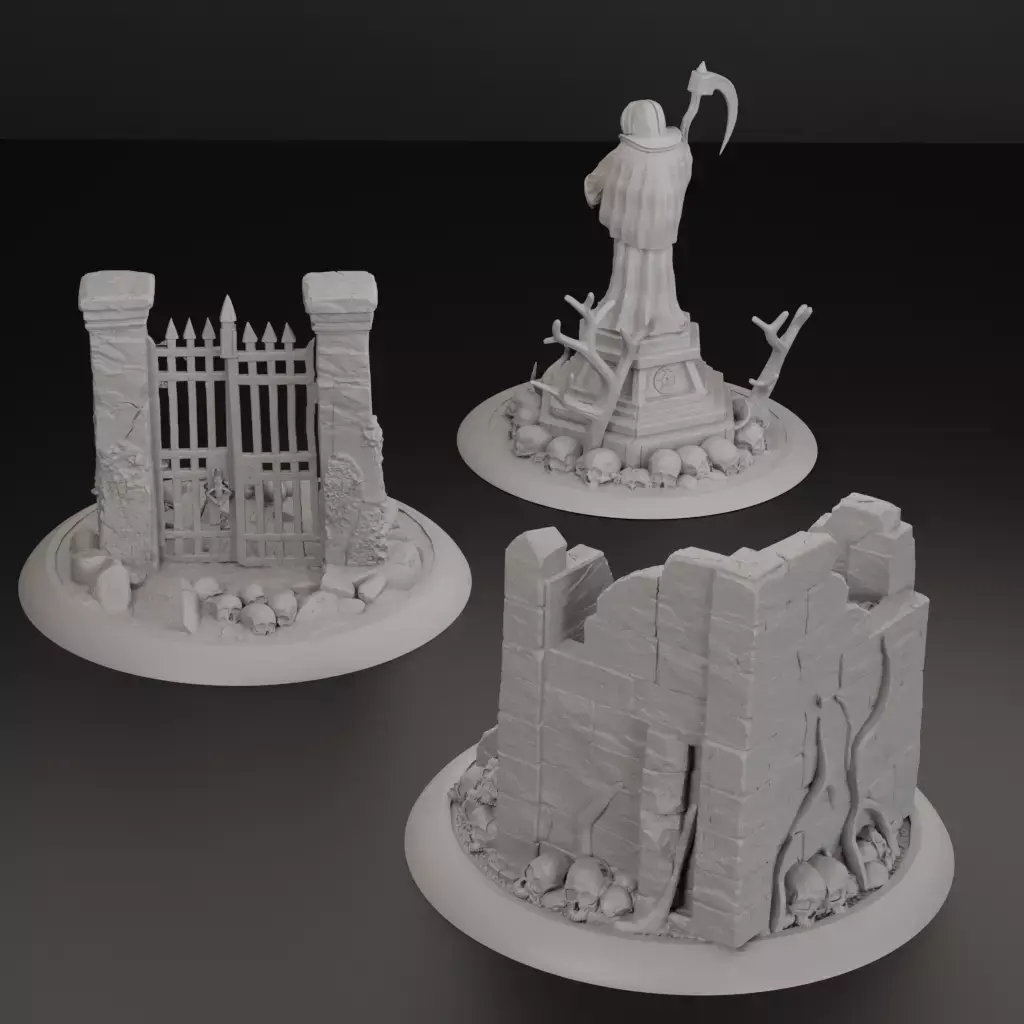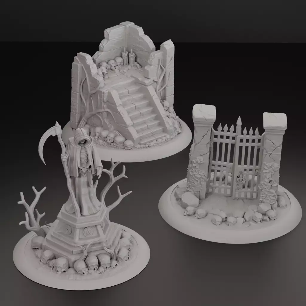 Bring a dark, spooky atmosphere to your gaming tables with the Cursed Gothic Graveyard set. This bundle includes three iconic scenery pieces, highly detailed for fantasy wargames and RPGs.The set includes: