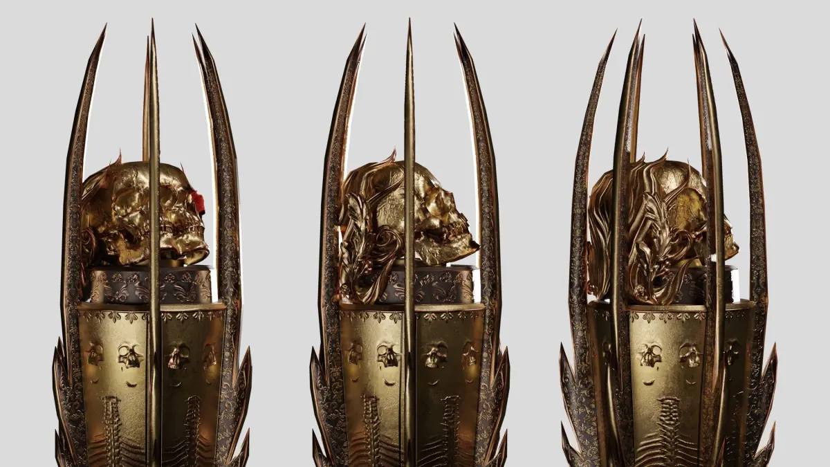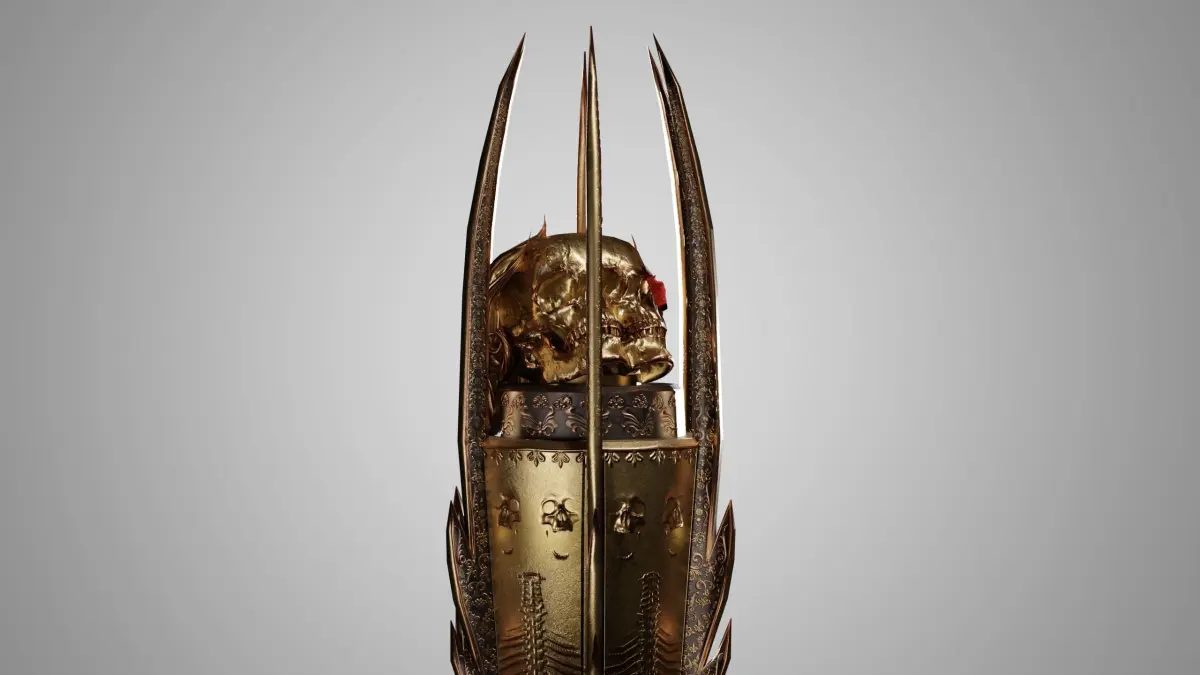 The fantasy staff is made in a dark style, ebony decorated with gold ornaments and skulls. Ideal for dark characters such as skeleton, dark magician. Detailing allows the model to be used in games and game engines, while the quality is not inferior to high poly models.