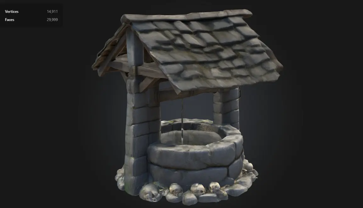 The Cursed Stone Well is a dark fantasy asset designed to add atmosphere and narrative depth to eerie environments. Featuring cracked stone, mossy roof tiles, and a sinister ring of skulls, this prop is ideal for haunted forests, cursed villages, and RPG dungeons. Game-ready and mid-poly, it balances detail with real-time performance.