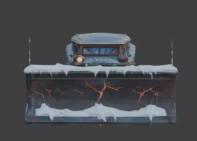 Bring a chilling atmosphere to your digital environments with this high-quality 3D model of a cursed winter utility interceptor. This specialized heavy vehicle is designed for extreme arctic or post-apocalyptic settings, featuring a weathered gunmetal chassis covered in hyper-realistic frost, icicles, and industrial oxidation. The standout feature is the massive front-mounted plow blade, which is uniquely shaped like a giant, reinforced coffin lid, giving the car a grim and unmistakable presence.