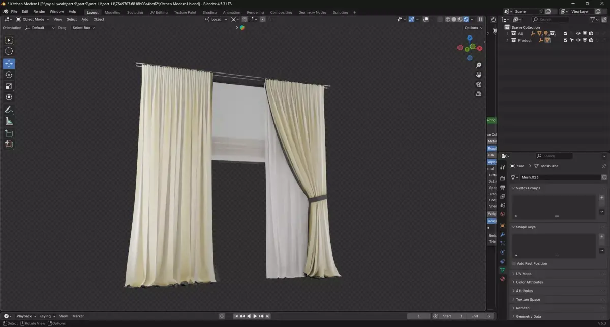 High-quality 3D model of curtain 01 featuring furniture item called curtain 01 for intorior or extorior decoration. The download includes the native Blender file with full material and lighting setup, as well as OBJ and FBX exports for compatibility with other software. Both high-poly and optimized low-poly meshes are provided, along with pbr textures (Color, Normal, Roughness, Displacement, and Subsurface Scattering). All assets are UV-mapped and ready for use in rendering, animation, or real-time projects.