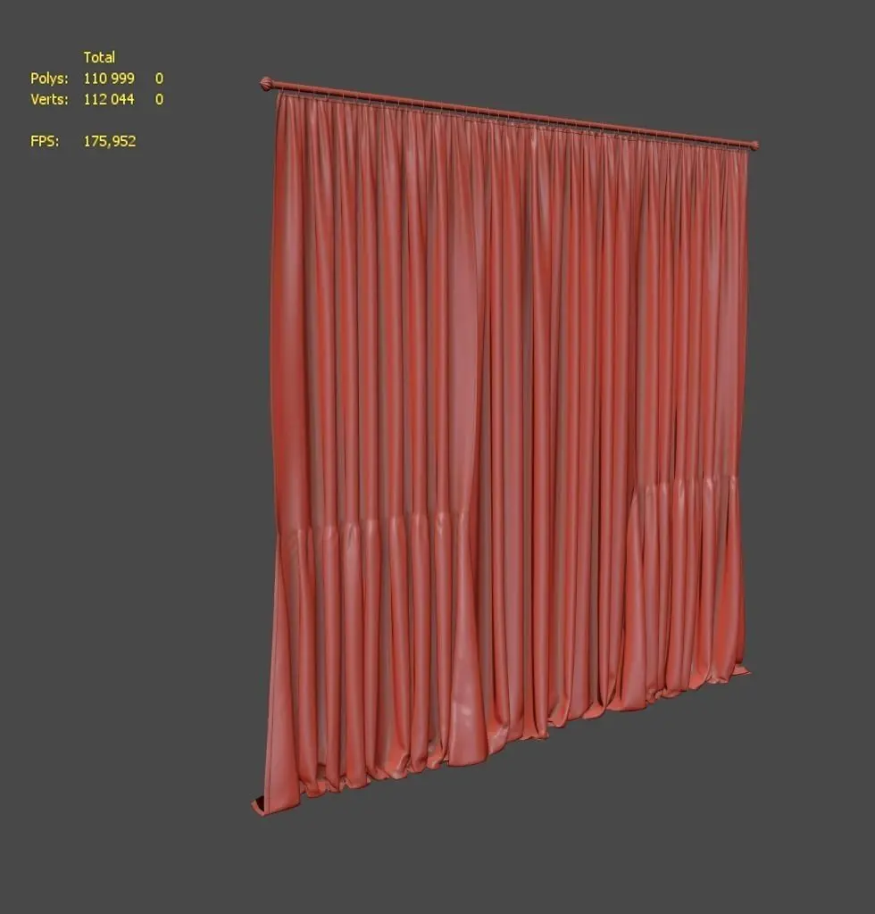 Highly detailed 3d model of curtain.The 3ds Max (2011) version comes fully textured and shaded for Vray (3.2) Smoothing Use NURMS Subdivision switches on already! Only quad polygon Enjoy. ......... Max2011 Vray3,2 FBX Texture