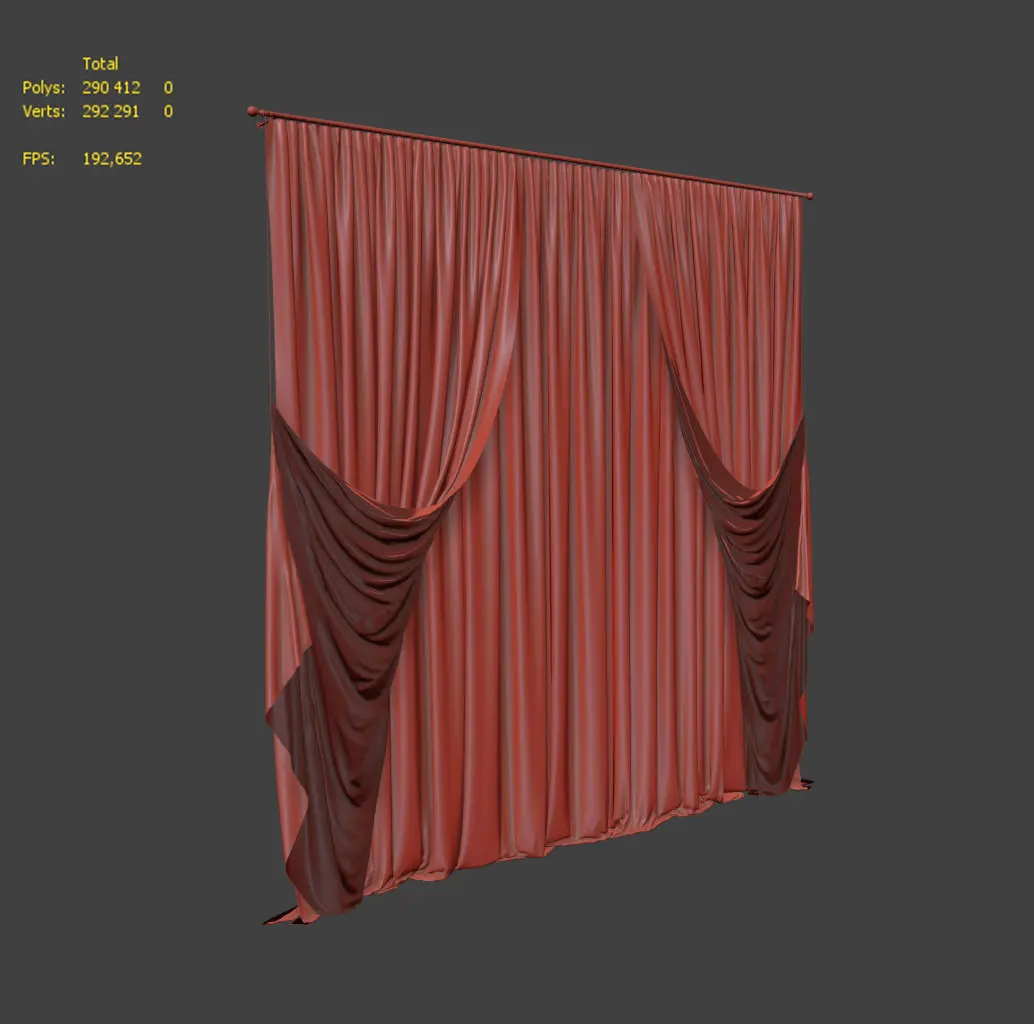 Highly detailed 3d model of curtain.The 3ds Max (2011) version comes fully textured and shaded for Vray (3.2) Smoothing Use NURMS Subdivision switches on already! Only quad polygon Enjoy. ......... Max2011 Vray3,2 FBX Texture