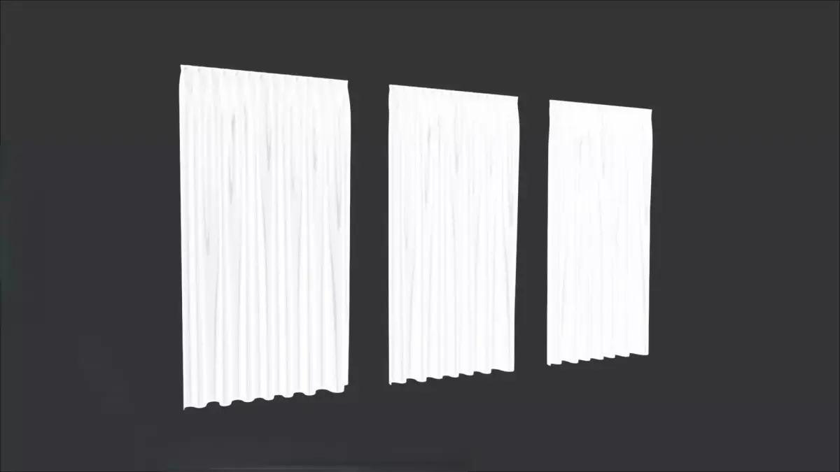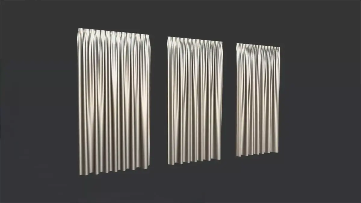 The file includes 3 curtain models and 3 color textures (gray, green, and khaki).