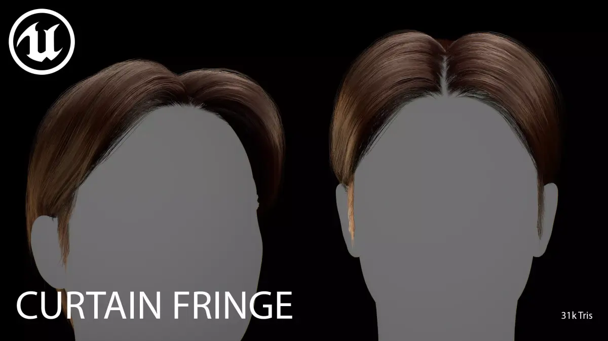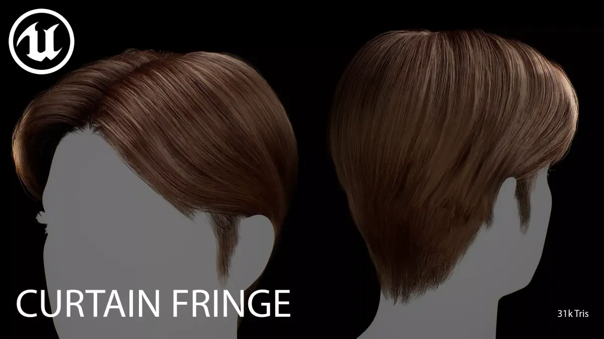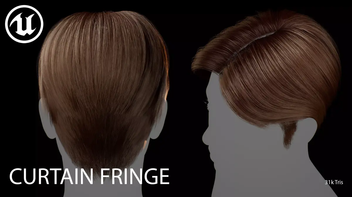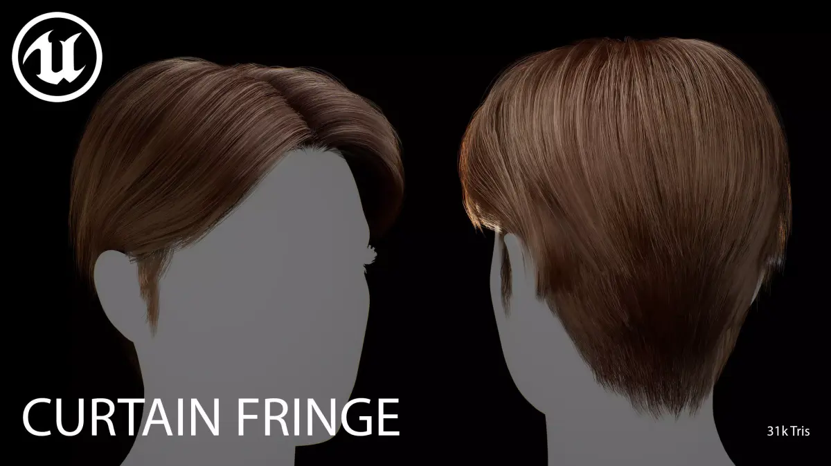 This real-time Curtain Fringe hairstyle is designed for use in games, cinematics, and real-time applications. Hair textures created with Fibershop and optimized for Unreal Engine 4-5, this asset delivers both performance and high visual quality.