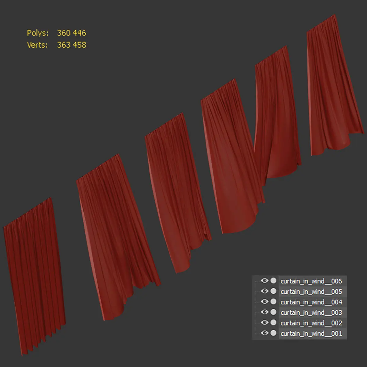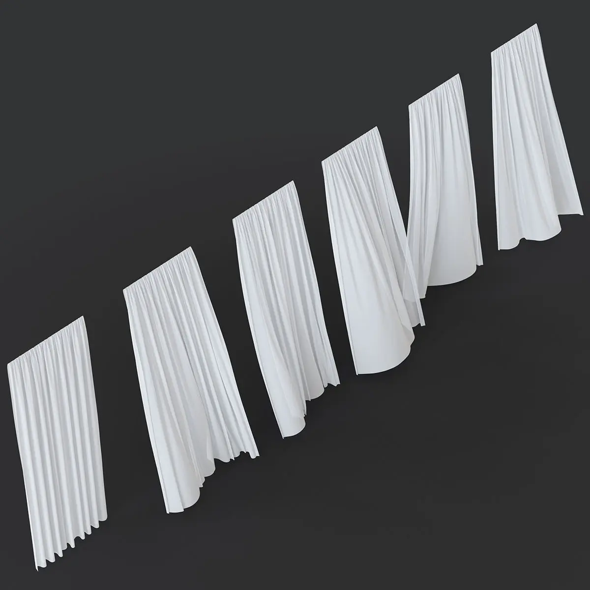 The archive contains 6 curtains with varying degrees of development from the wind.The size of the canvas is 2000x2800h and 1000x2800h when folded.
