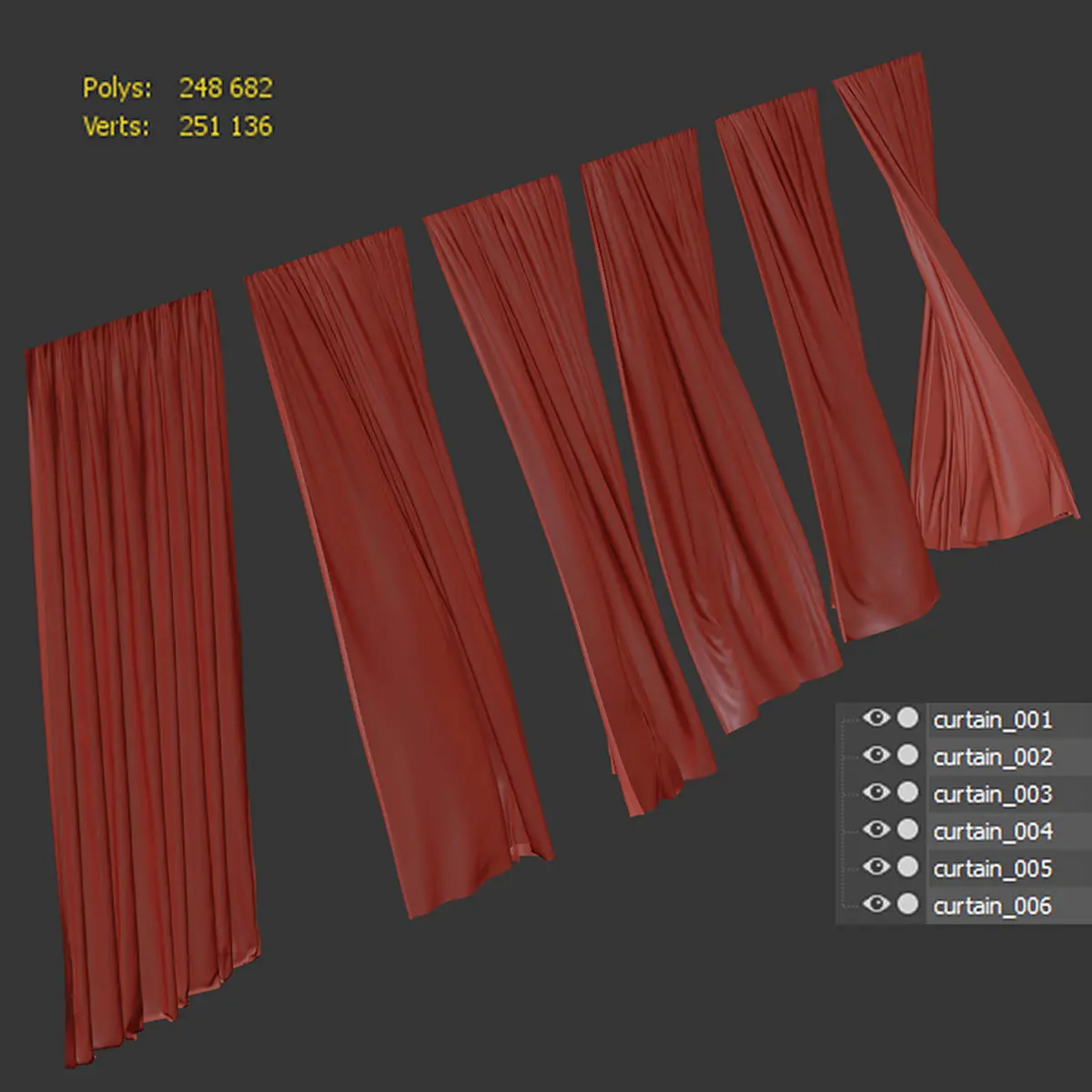 The archive contains 6 curtains with varying degrees of development from the wind.The size of the canvas is 2000x2800h and 1000x2800h when folded.