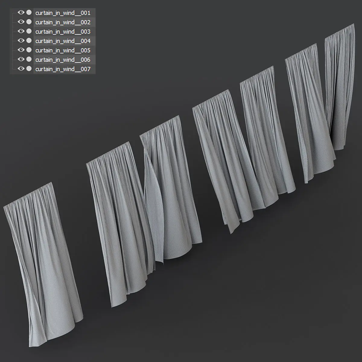 The archive contains 7 curtains with varying degrees of dispersion from the wind.The size of the canvas is 2000x2800h and 1000x2800h when folded.