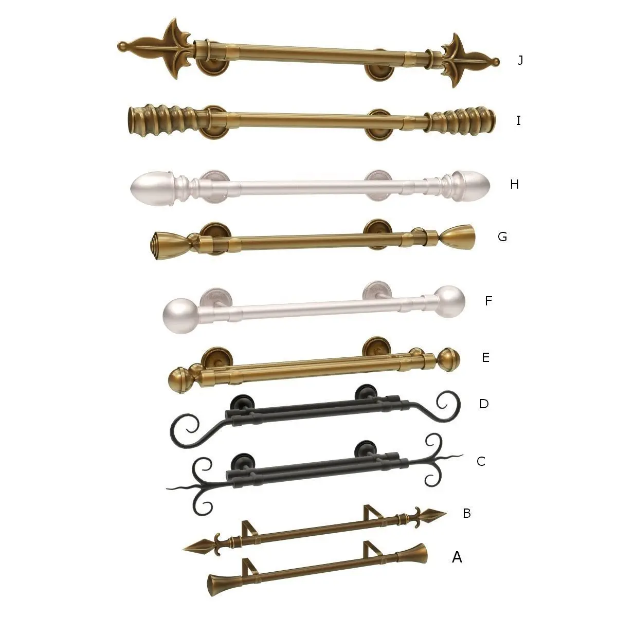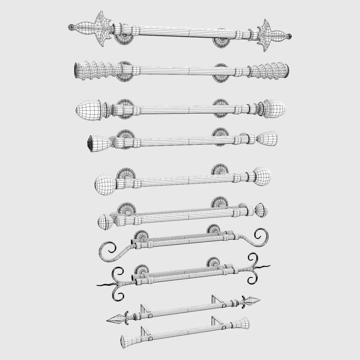 Detailed model of 10 Curtain Rods. Suitable for indoor scenes. Renders were created with Cycles. Materials are included only for Cycles.