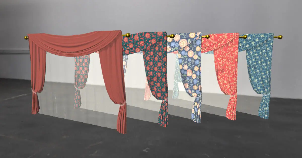 A set of game-ready curtain 3D models. There are two versions of the model with 10 different textures.