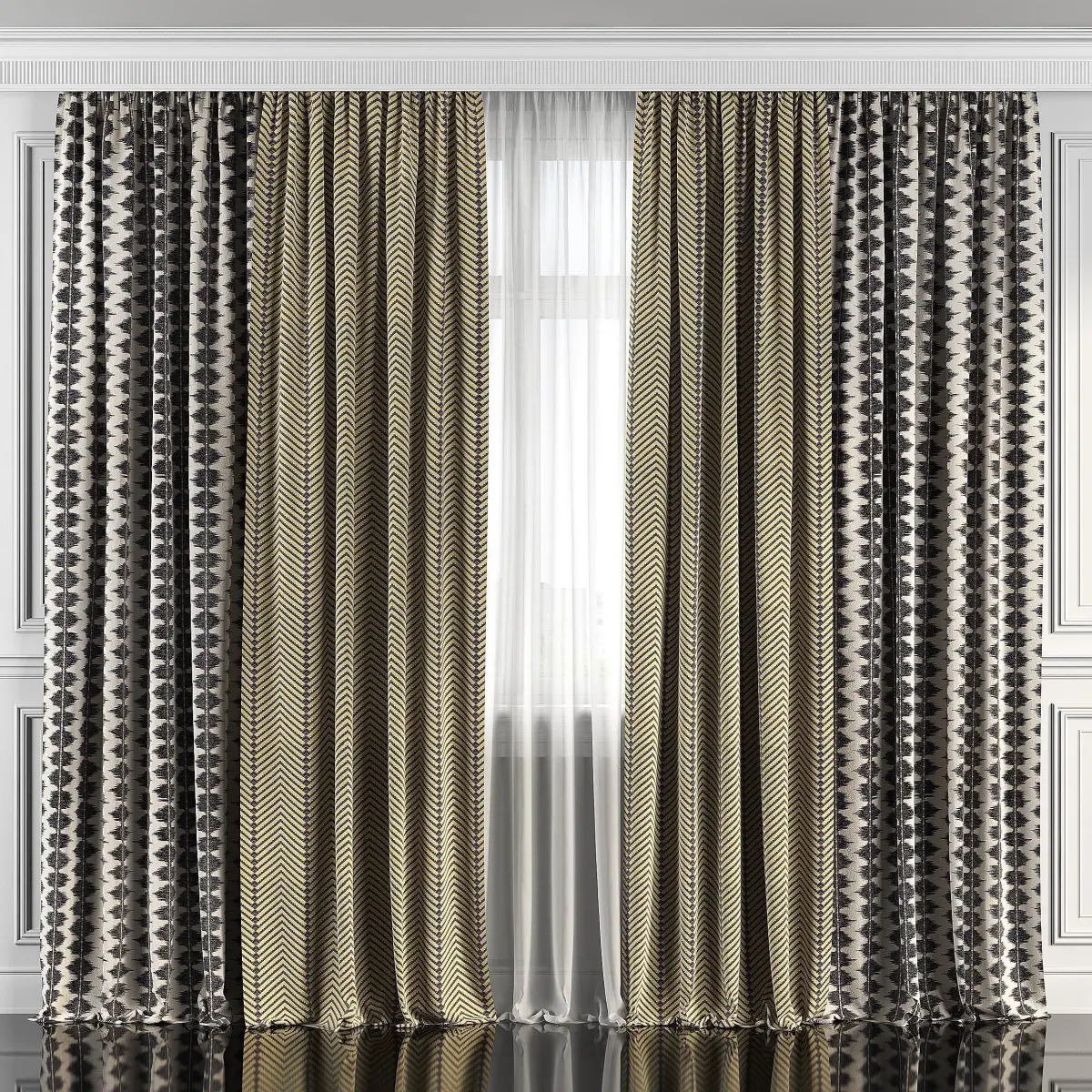 3D model of curtains and window. Curtains are suitable for any interior design of houses, apartments, bedrooms and living rooms.