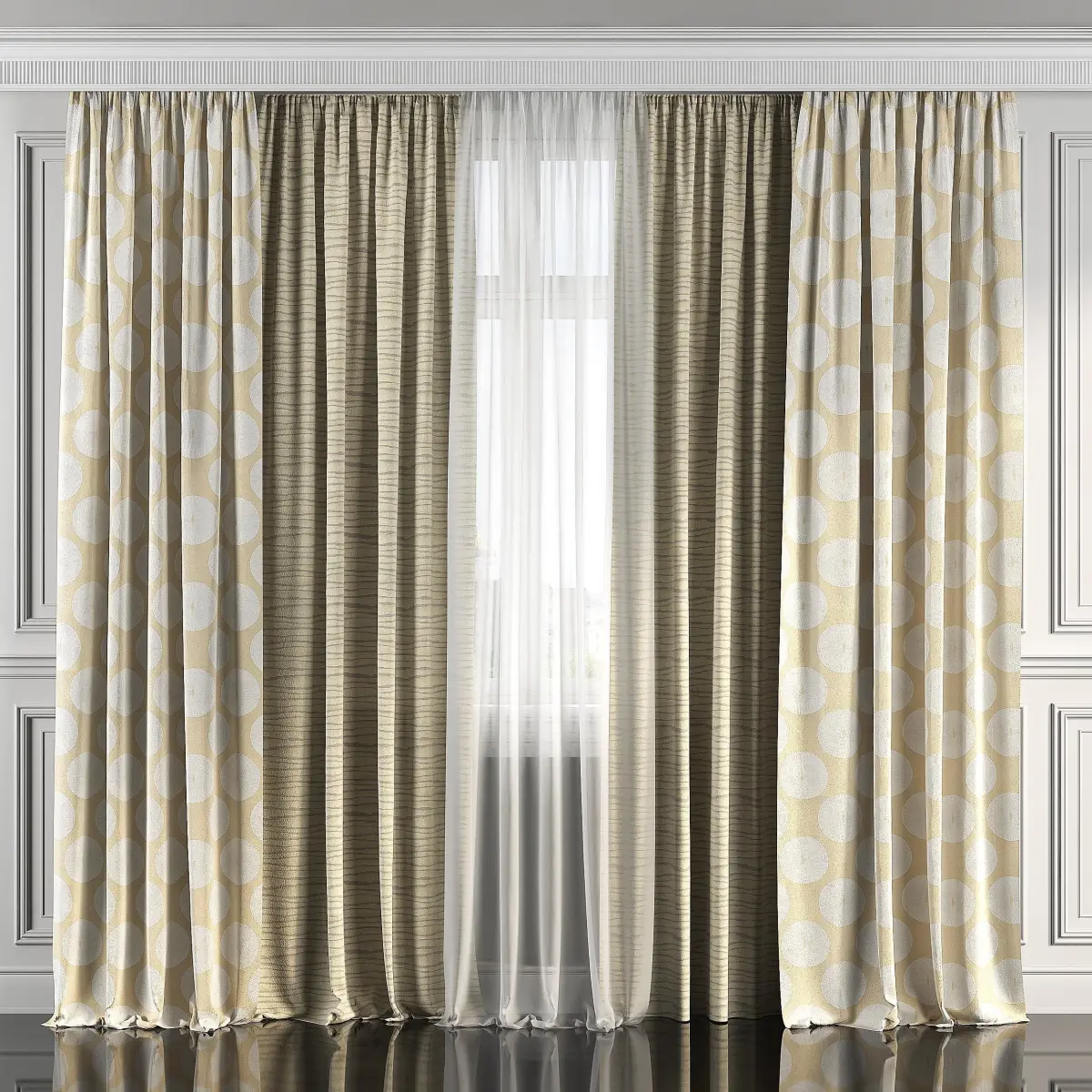 3D model of curtains and window. Curtains are suitable for any interior design of houses, apartments, bedrooms and living rooms.