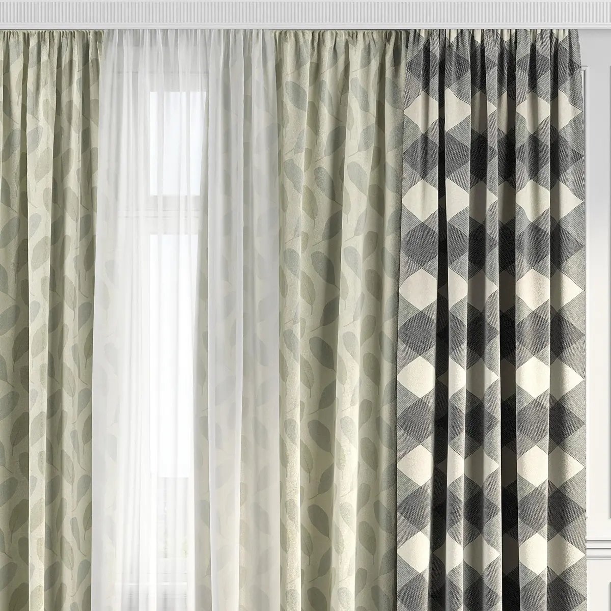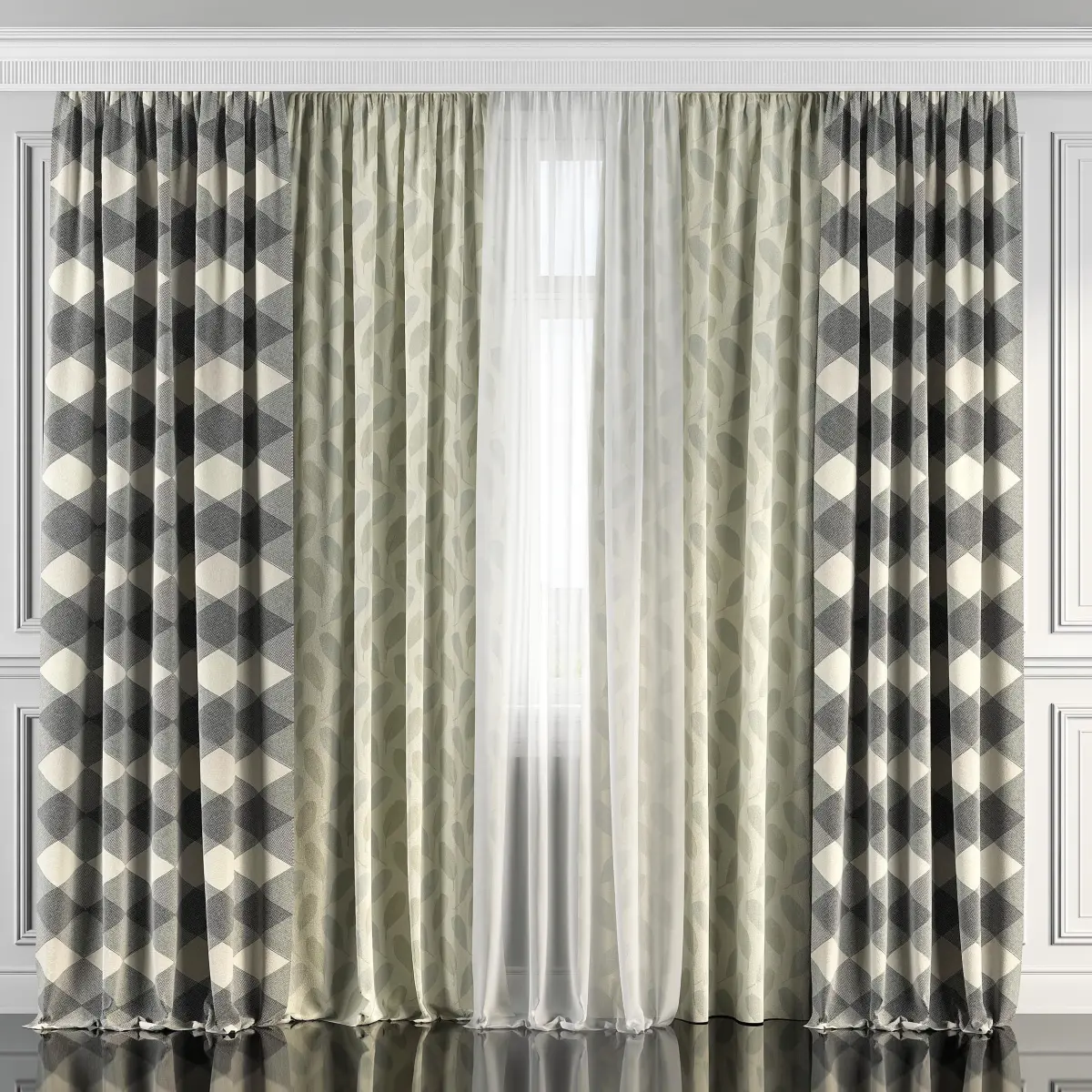 3D model of curtains and window. Curtains are suitable for any interior design of houses, apartments, bedrooms and living rooms.