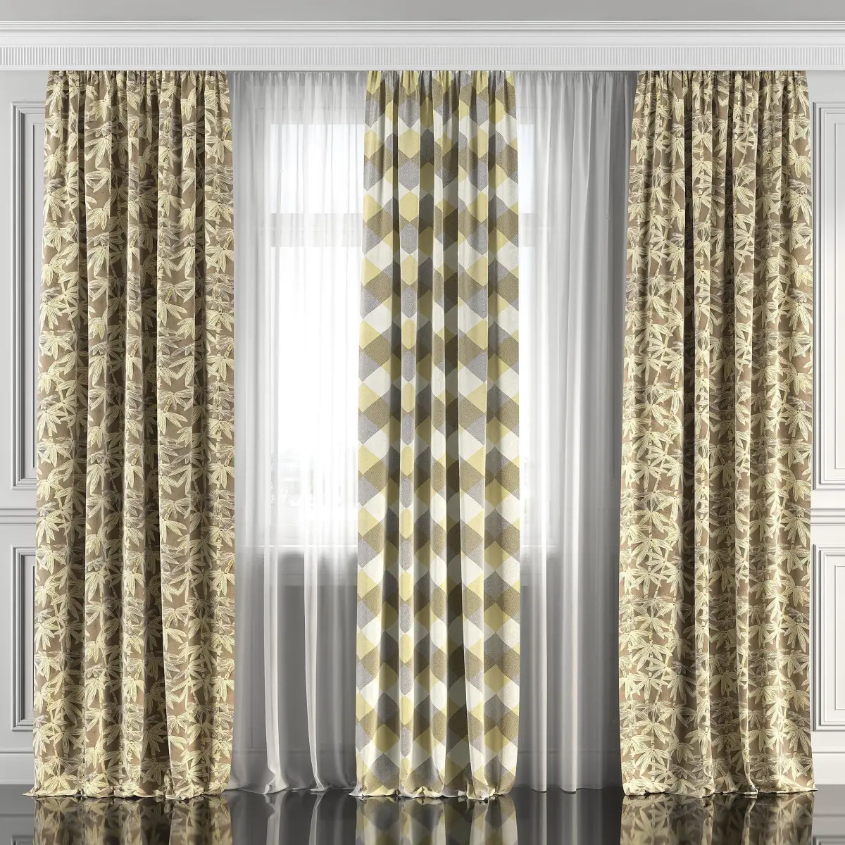 3D model of curtains and window. Curtains are suitable for any interior design of houses, apartments, bedrooms and living rooms.